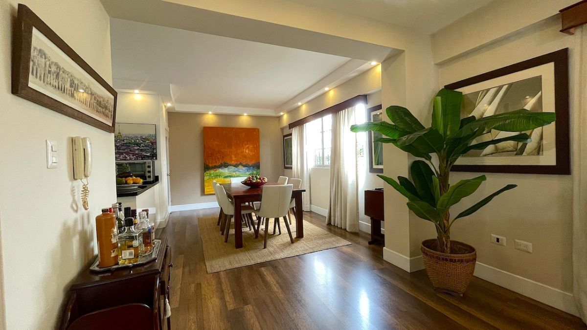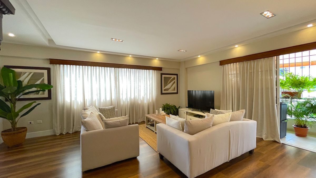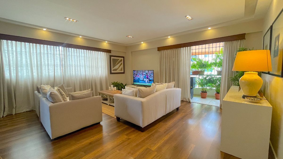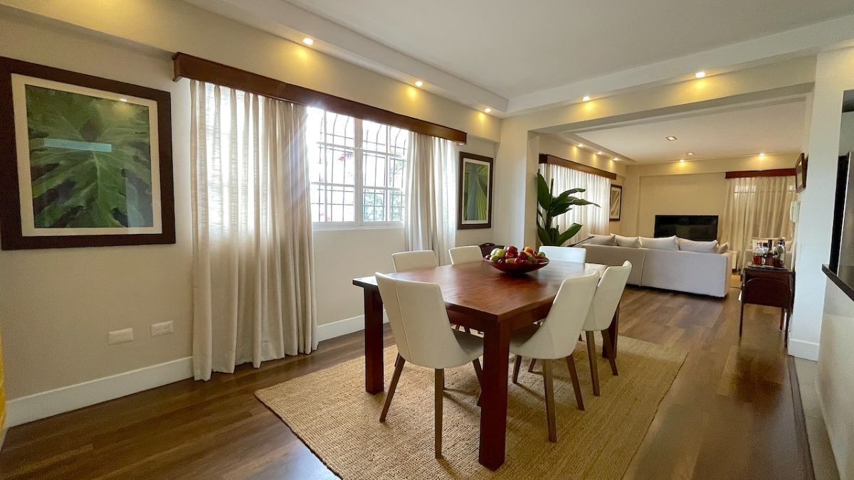 Te presentamos esta excelente propiedad en venta en Mirador Norte entre la Ave. Privada y la Núñez de Cáceres. En torre clásica y familiar con pocas unidades. Pequeña terraza común. El apartamento te ofrece adecuaciones con acabado modernos y en condiciones de nuevo. Espacios internos muy bien aprovechados, claros y ventilados con visual despeja desde todas su ventanas. Balcón con vista a la calle y de orientación SUR. Pisos laminados en madera, paredes estucadas, shutters eléctrico y manuales. Habitaciones de buen tamaño con walk-in closet y closets habilitados. Area de lavado y servicio completa. Cocina modular integrada con horno y hornillas empotrada . Tope de cocina con Splash en granito natural. Facias en todo el apartamento con luces indirectas que amenizan tu hogar. 193 m2 brutos 170 m2 netos + parqueos 4to. nivel 2 parqueos techados en línea Elevador con acceso personalizado Planta eléctrica y gas común NO dejes de visitar esta unidad y quedarás encantado Observaciones. El precio no incluye el mobiliario