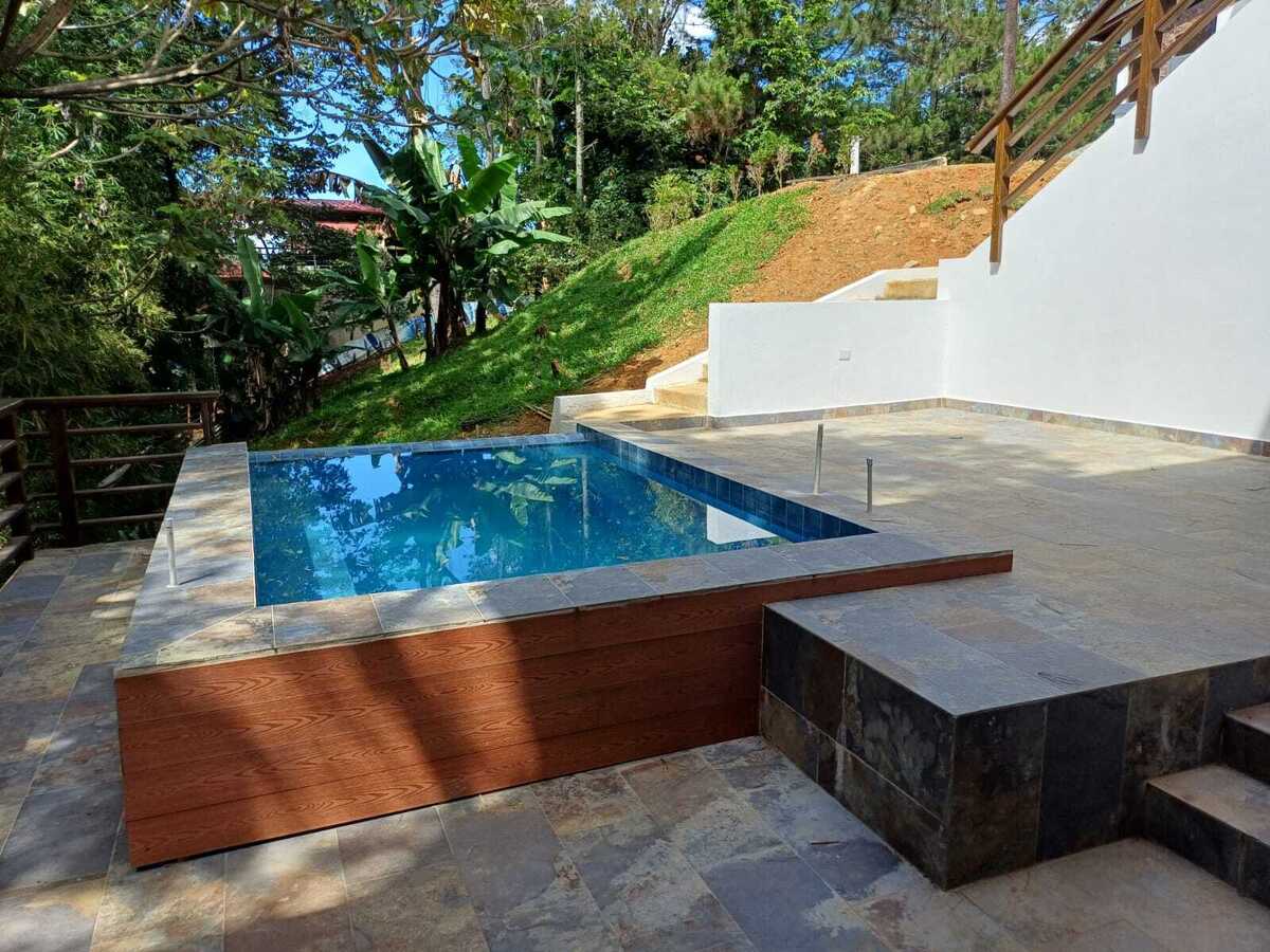 Villa Hermosa en proyecto cerrado a estrenar. Techos de doble altura, diseño moderno con espacios integrados, disfruta de la naturaleza en un paraíso natural Terminación de primera calidad. En el primer nivel tiene jardín frontal, marquesina, puerta de dos y doble altura,recibidor, sala con chimenea, Terraza amplia en forma de L y hermosa vista al patio rodeada de Bambus, comedor, cocina y patio interior con vista al centro de la casa completa. Disfruta en una zona tranquila cerca de los ríos, de una villa con 2 niveles, de gran amplitud y muy bien ventilados. Picuzzi en nivel bajo , aprovechando el terreno. 4 Habitaciones, cada una con su baño en el nivel menos uno ,sótano con acceso directo al patio, y al área de terraza del picuzzi. Completamente amueblada a estrenar!! Se alquila por 3 noches mínimo por navidad a 500.00 x noche. Ahora oferta de US500.00 por noche!!maximo 12 personas