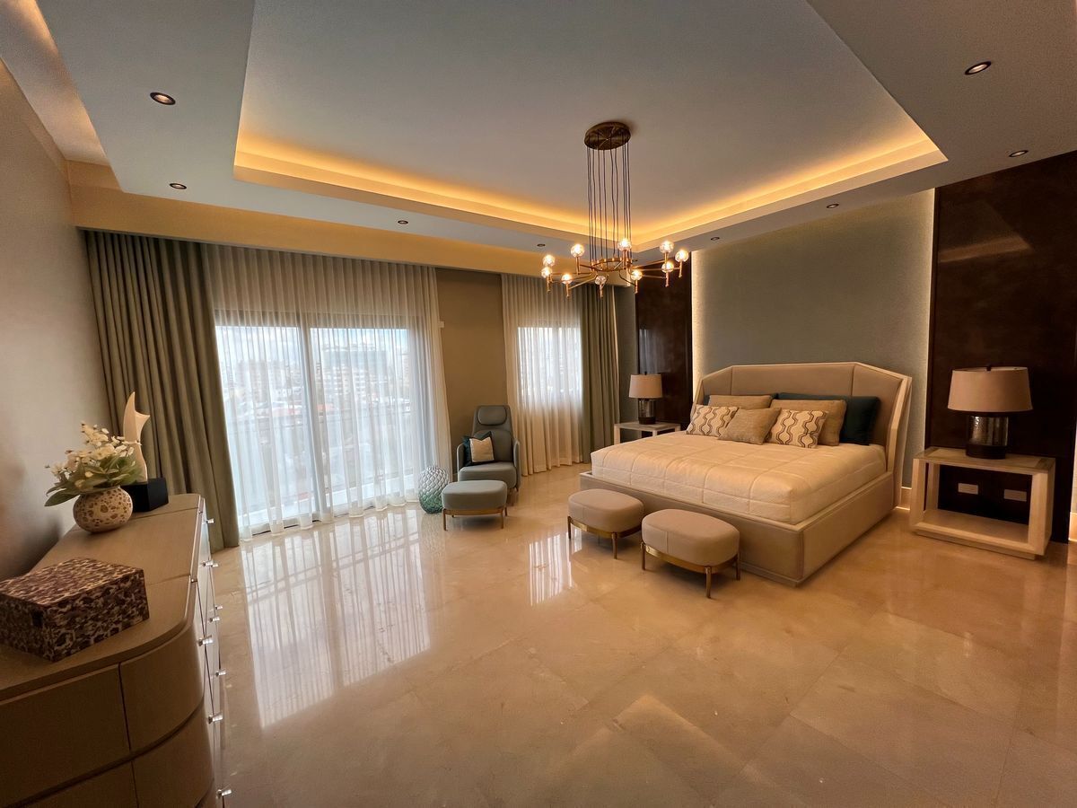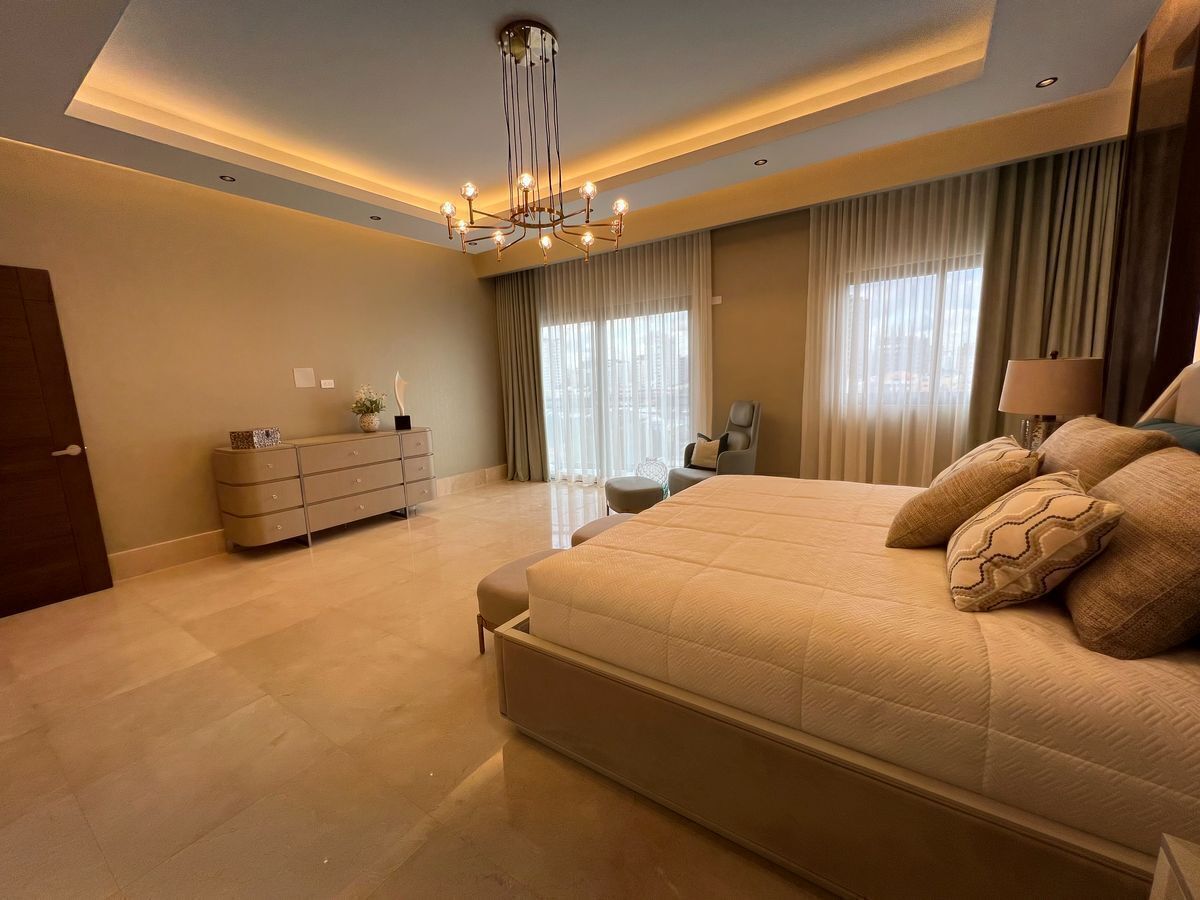 Torre Moderna de 22 niveles de apartamentos, proyectados a 2 apartamentos por nivel. • Cuatro niveles de estacionamientos • Un nivel de áreas sociales • Veinte (20) niveles de apartamentos • Total de apartamento cuarenta (40) DESCRIPCION APARTAMENTO: 360m2 neto de construcción 416.50m2 total • Vestíbulo de entrada • Doble sala • Estudio • Estar familiar • Comedor cerrado • Amplia Terraza • Tres habitaciones cada una con baño y walking closet • Closet de ropa blanca • Baño para visitas • Cocina fría • Cocina caliente • Área de lavado • Habitación de servicio • 1 Locker en el área de estacionamiento • 4 parqueos techados por apartamentos CARACTERISTICAS DE LA TORRE: • dos Ascensores de Lujo. • 1 Ascensor de Servicio • Generadores Eléctricos • Estación de Conserjería • Seguridad y Monitoreo de Circuito Cerrado • Área de Estar y comedor para choferes • Tratamientos de Agua desde la Cisterna • Ducto de Basura con Cuarto frío • Gas Común CARACTERISTICAS DE LAS AREAS SOCIALES • Recepción • Lobby y Sala de Espera • Salón para Actividades • Área de lounge con bar integrado • Área de Juegos para niños • Gimnasio • Piscina • Terraza Cubierta • Acogedora y confortable área de Spa • Baños para visitas • Jardinería y Eco-ambiente • BBQ LAS FOTOS SON DEL APTO MODELO ** ENTREGA Julio 2025
