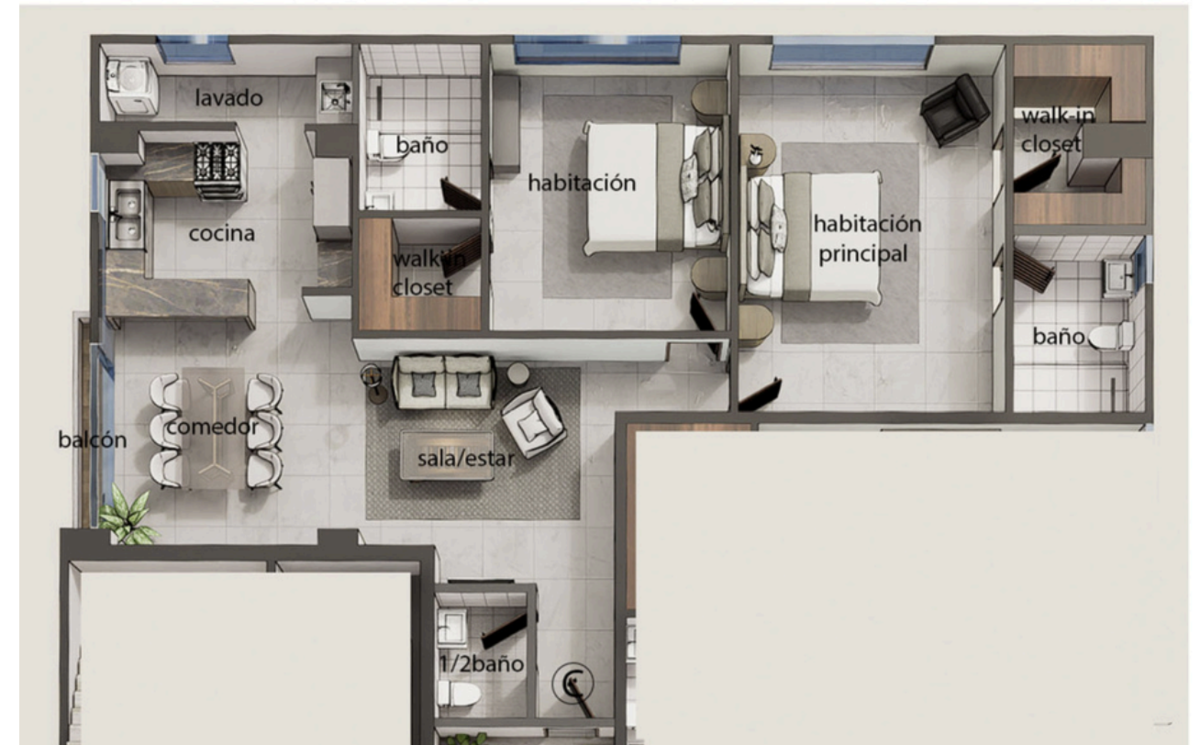 Características: 87m2 cuadrados 2 Habitaciones 2.5 Baños Sala Comedor Cocina Modular 1 Parqueo Áreas Sociales: Lobby Gimnasio Terrazas Destechadas Jacuzzi Características Generales: Proyecto Cerrado Video Portero Planta Full Gas Común Pozo Cuarto Conserje C/Baño Forma De Pago: Separación 10% Inicial (12 meses) 40% Financiamiento 50%
