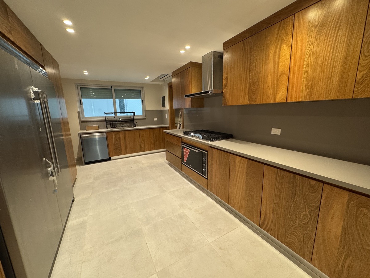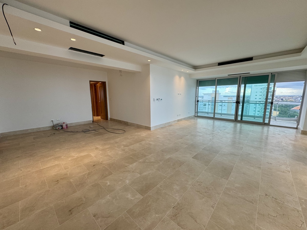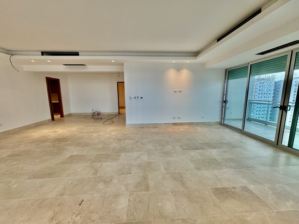 ** nuevo para estrenar ** piso alto con vista panoramica ** 265 m2 1 apartamento por piso 3 habitaciones con sus banos y walk-in closets sala comedor amplio balcon en L 2 cocinas cerradas family room 3 parqueos paralelos 1 locker shutters electricos mallas en el balcon Caracteristicas de la torre: Dos torres conectadas » Un ascensor en cada torre » Ascensor de servicio » Funciona como un apartamento por nivel » Cuatro parqueos de visita » Gimnasio y area infantil » Pisos en mármol » Madera preciosa en puertas y cocina » Tope de cuarzo en cocinas » Muro cortina con vidrios insulados y templados » Fachada moderna » Generadores Eléctricos Sincronizados » Porcelanato en baños y área de servicios » Gas común con medidor individual » Sistema contra incendio » Cámaras de seguridad en accesos Precio alquiler: US$ 3,500 incl mant, aires y linea blanca ** entrega estimada en Nov 2025