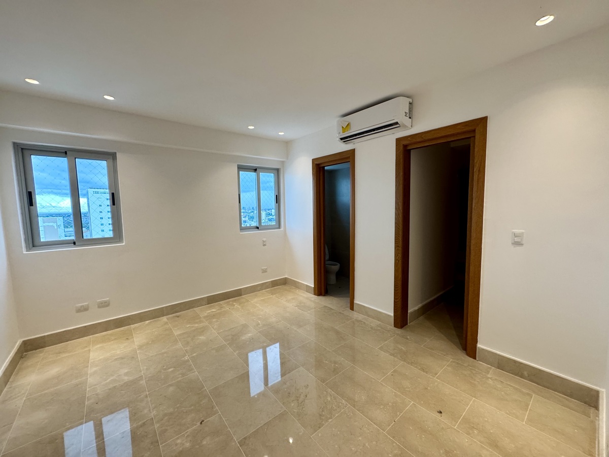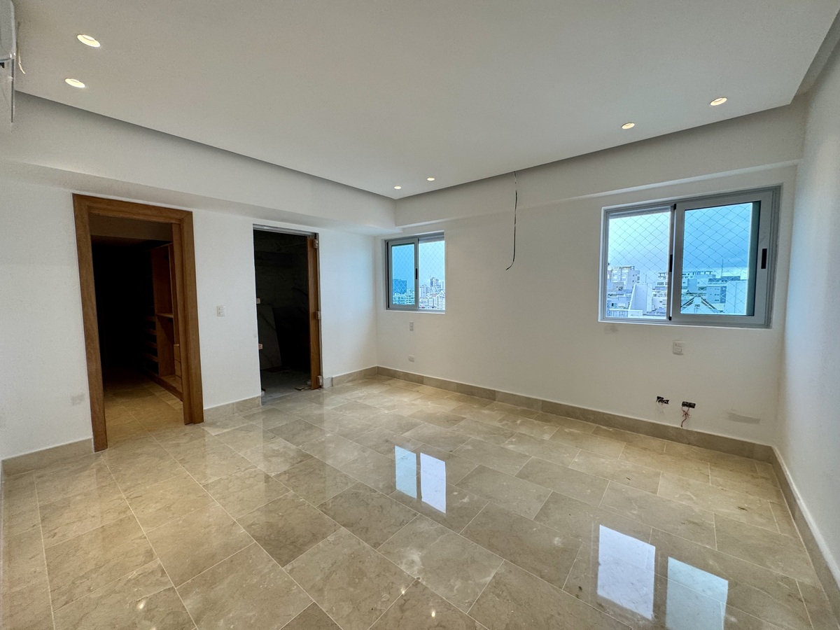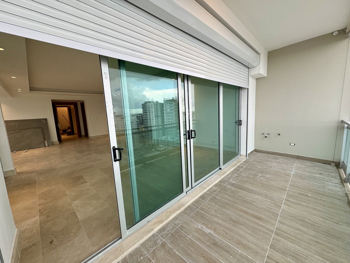 ** nuevo para estrenar ** piso alto con vista panoramica ** 265 m2 1 apartamento por piso 3 habitaciones con sus banos y walk-in closets sala comedor amplio balcon en L 2 cocinas cerradas family room 3 parqueos paralelos 1 locker shutters electricos mallas en el balcon Caracteristicas de la torre: Dos torres conectadas » Un ascensor en cada torre » Ascensor de servicio » Funciona como un apartamento por nivel » Cuatro parqueos de visita » Gimnasio y area infantil » Pisos en mármol » Madera preciosa en puertas y cocina » Tope de cuarzo en cocinas » Muro cortina con vidrios insulados y templados » Fachada moderna » Generadores Eléctricos Sincronizados » Porcelanato en baños y área de servicios » Gas común con medidor individual » Sistema contra incendio » Cámaras de seguridad en accesos Precio alquiler: US$ 3,500 incl mant, aires y linea blanca ** entrega estimada en Nov 2025