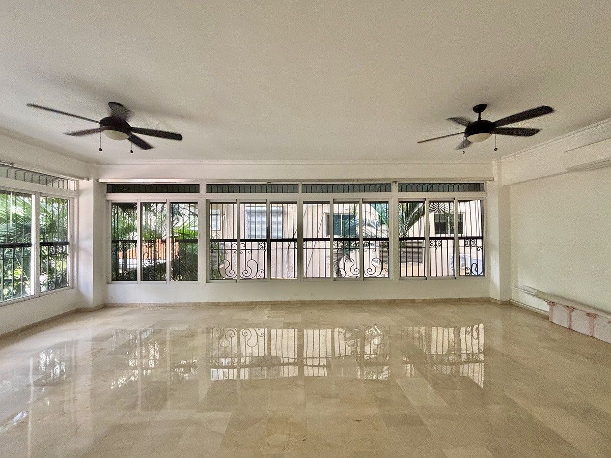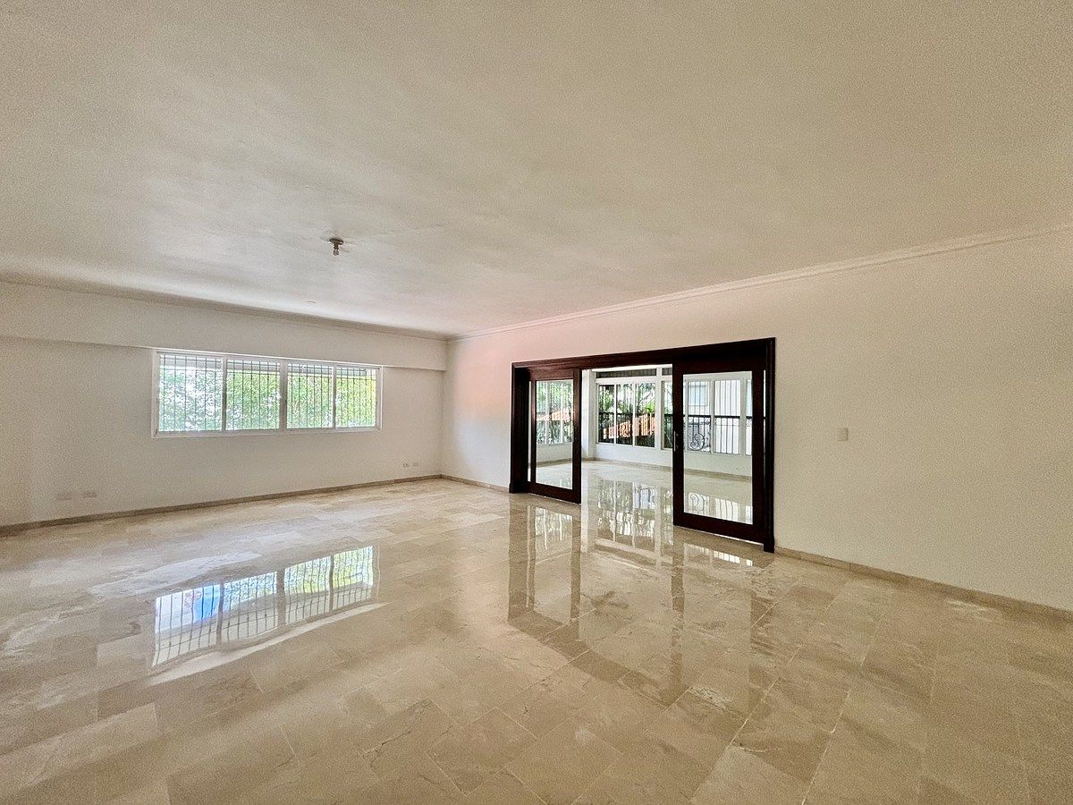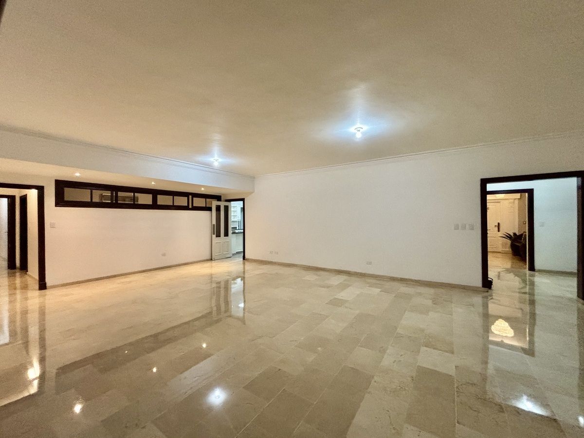 Apartamento clásico en torre muy bien cuidada en Piantini. 365M2 Nivel 2 Dos apartamentos por piso •Amplio lobby compartido por los dos apartamentos •Recibidor •Sala comedor •Amplio salón con ventanales para uso como comedor, estudio o segunda sala •Medio baño •Cuarto para oficina, estar familiar u otro uso •Otro cuarto con clóset regular •Clóset de ropa blanca •Tres habitaciones con walk-in closet (el principal forrado en cedro). Tres baños, dos de ellos con lavamanos independiente, el principal con lavamanos doble •Amplia cocina con desayunador, amplia despensa y closets para vajillas. Acceso independiente al lobby •Área de lavado y cocina caliente •Cuarto de servicio con su baño •Dos parqueos •Locker La torre tiene un acogedor lobby amueblado y climatizado gazebo y area para choferes. Dos ascensores, dos plantas eléctricas, gas común. Equipos: Seis unidades de AC, seis abanicos de techo, lavadora, secadora, nevera, estufa y extractor