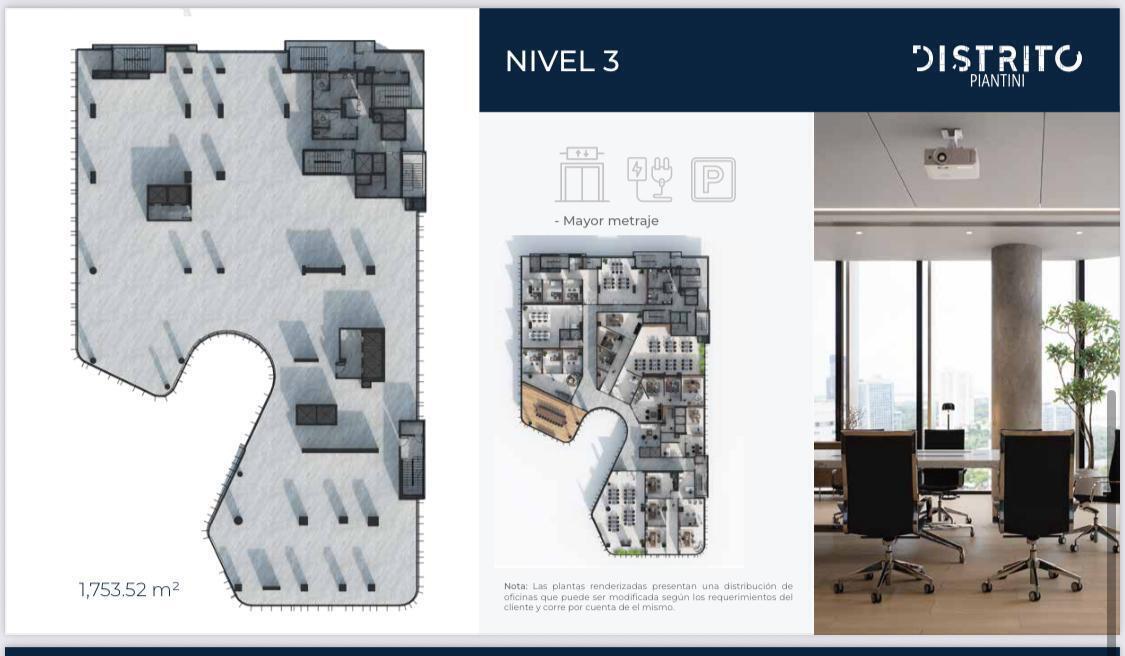 Distrito Piantini – Oficinas Corporativas en el Corazón Financiero de Santo Domingo, Piantini Descripción general:Distrito Piantini es un desarrollo de uso mixto que integra espacios hoteleros, comerciales y corporativos en una ubicación estratégica del polígono central. Es el proyecto ideal para empresas que buscan visibilidad, prestigio y eficiencia operativa. Las oficinas corporativas están distribuidas en tres niveles exclusivos (N2, N3 y N4), con más de 5,260 metros cuadrados disponibles para venta total o por planta completa. Estas plantas han sido diseñadas para adaptarse a empresas de alto perfil, ofreciendo flexibilidad y un ambiente profesional de primera clase. Características destacadas: Baños privados en cada nivel Áreas designadas para sistemas de climatización Acceso por 2 ascensores exclusivos desde todos los niveles soterrados Lobby corporativo con recepción en el nivel 1 Lockers opcionales en los sótanos 1 parqueo por cada 30 m² Precios de venta por nivel: Nivel 2 – 1,715.59 m²: USD 8,406,391 Nivel 3 – 1,753.52 m²: USD 8,592,248 Nivel 4 – 1,795.69 m² (incluye terraza frontal): USD 8,798,881 Precio de alquiler:USD 35 por m² + mantenimiento (a definir) + ITBIS Fecha estimada de entrega:2026 ¿Coordinamos una visita?Contáctanos para agendar un recorrido personalizado y recibir la presentación comercial con planos y especificaciones técnicas.