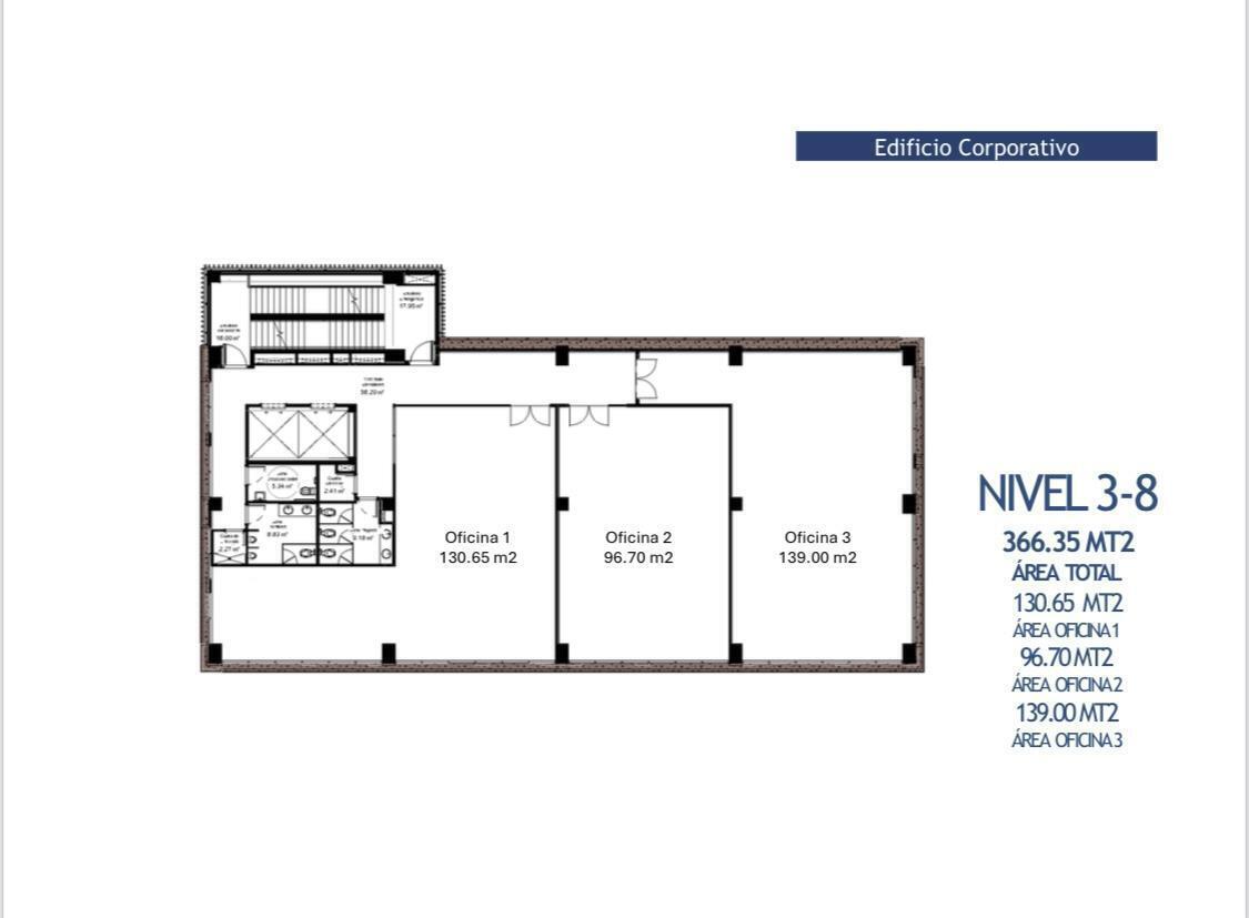 Edificio Corporativo en Alquiler – SQUARE Santiago de los Caballeros Ubicado en Las Tres Cruces, corazón corporativo de Santiago, SQUARE redefine el estándar de oficinas premium con diseño contemporáneo, tecnología y ubicación estratégica dentro del eje comercial más dinámico de la ciudad. Características Generales • ?? 7 niveles corporativos + lobby y sótano de estacionamiento • ?? Superficie total construida: 3,312.40 m² • ?? 2 elevadores Hosting (14 y 17 personas) • ? Planta eléctrica full de 425 KW • ?? Preinstalación VRF de alta eficiencia • ?? Entrega en obra gris para adecuación personalizada • ?? 50 parqueos disponibles • ?? Cisterna de agua tratada y sistema hidrosanitario con presión constante • ?? Sistema contra incendios, escaleras presurizadas y puertas RF • ?? Conectividad con fibra óptica y CCTV en áreas comunes • ????? Seguridad 24/7 y lobby corporativo con control de acceso Distribución por Niveles • Lobby: 117.25 m² • Niveles 3 al 8: 456.45 m² por nivel • Nivel 9: 456.45 m² (338.17 m² interiores + 118.28 m² terraza) • Locales en obra gris listos para adecuar según identidad corporativa. Precio de Alquiler • ?? US$ 27.00 /m² + mantenimiento + ITBIS • Entrega estimada: 90 días Ventajas Competitivas • Ubicación estratégica en el centro neurálgico de Santiago • Cercanía a bancos, hoteles, restaurantes y zonas ejecutivas • Diseño arquitectónico contemporáneo y eficiente • Ideal para oficinas corporativas, instituciones financieras o BPOs • Espacios luminosos, funcionales y de alta eficiencia energética ?? Dirección: Calle del Sol esquina R. César Tolentino, Santiago de los Caballeros ?? Contáctanos para conocer disponibilidad, planos y visitas personalizadas. ?