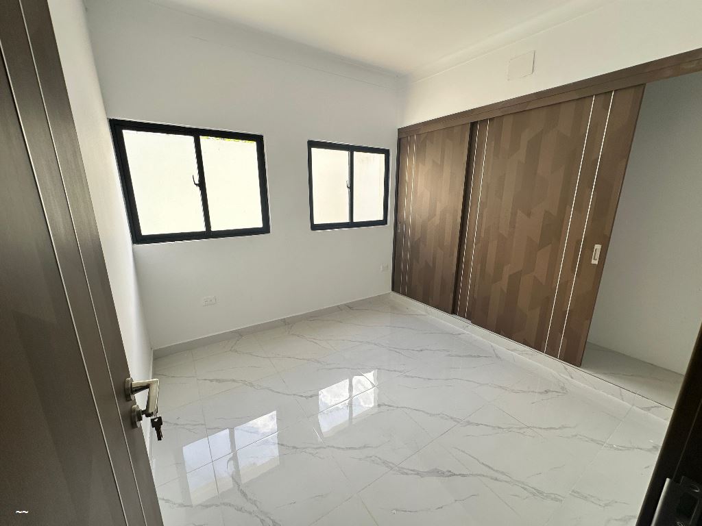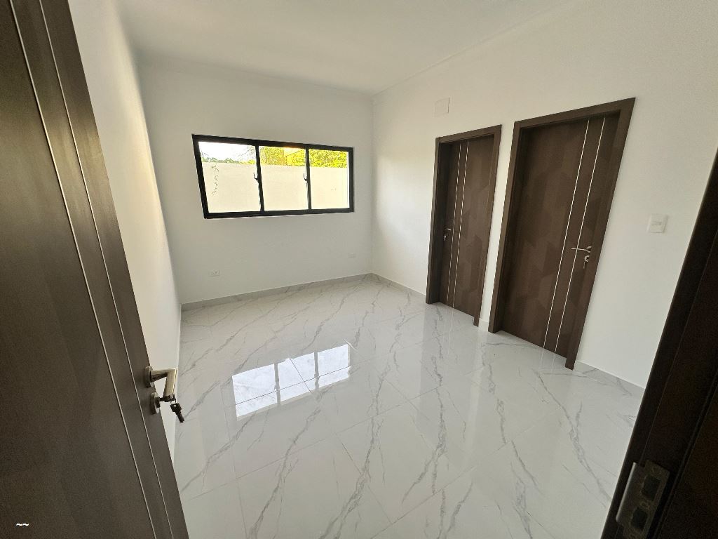 162 metros totales -60 Mt2 Patio -1 PARQUEO -2 HABITACIONES -W.C. en habitación -principal -Comedor -Cocina -2.5 baños -área de lavado -Habitación de servicio con su baño Terminaciones -Madera preciosa -Cocina modular -Porcelanato en pisos -Ceramica en baño -Yeso en techo -Corniza de yeso en techo -Salida de Aire Acondicionado -Calentador de agua -Portones eléctricos -Pozo de agua -Cámara de seguridad -Cisterna -Garita de seguridad -Intercon