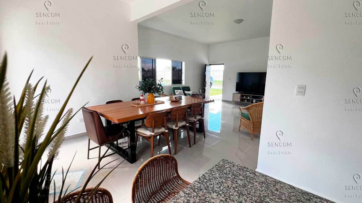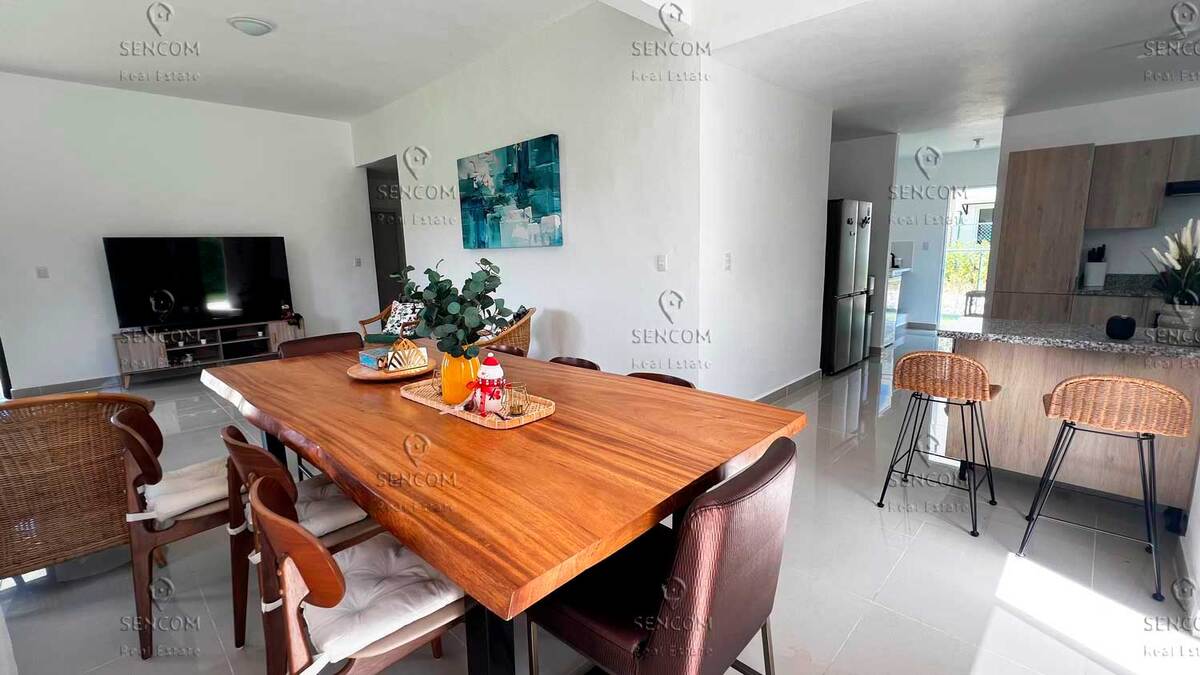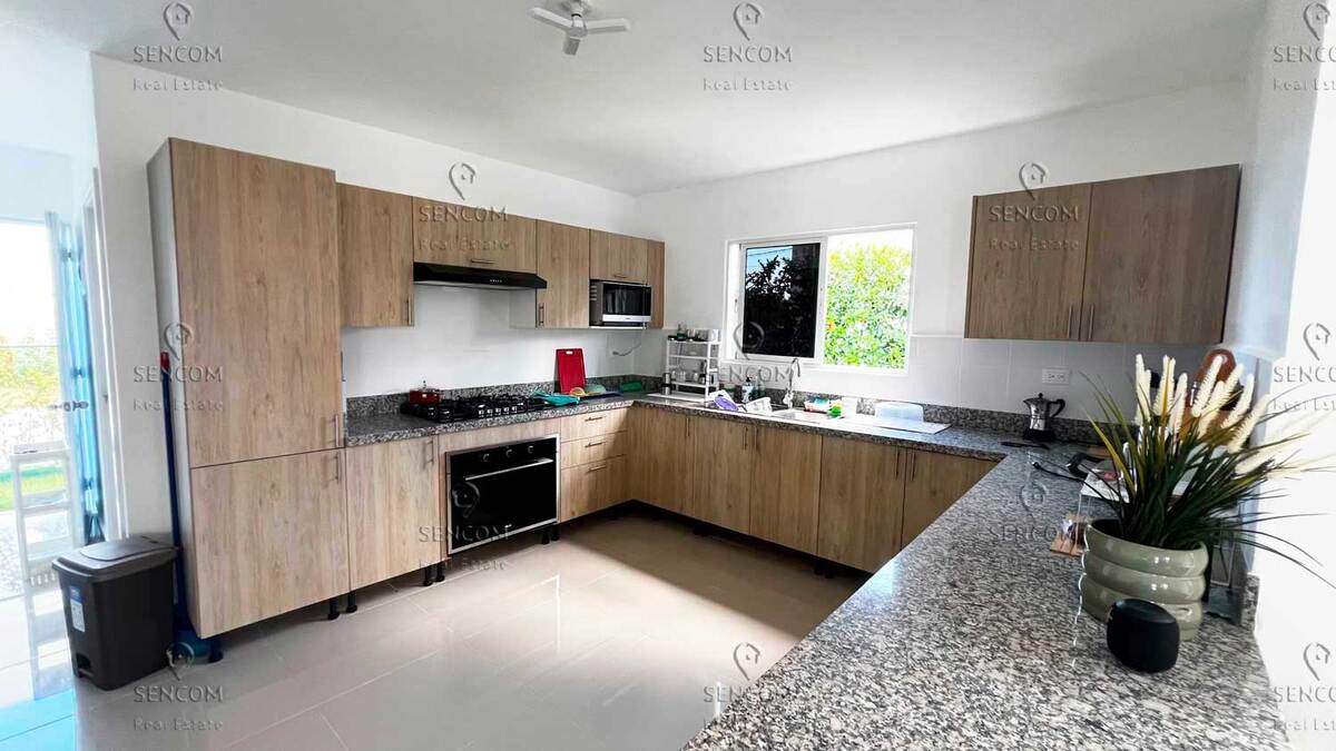 Bienvenido a una acogedora casa de tres dormitorios ubicada en una de las comunidades más solicitadas de Punta Cana – Ciudad La Palma! Este exclusivo complejo residencial cerrado con seguridad 24/7 está estratégicamente ubicado a solo 8 minutos del Aeropuerto Internacional de Punta Cana y a 6 minutos de BlueMall Puntacana y del supermercado Nacional. Dentro de la comunidad también encontrará un mini-market, salón de belleza, plaza comercial, restaurantes, áreas deportivas, parques, clínicas veterinarias y farmacias. La casa está completamente lista para habitar y equipada con todo lo necesario: muebles, electrodomésticos y aires acondicionados en cada dormitorio. Sus amplios espacios están llenos de luz natural y la distribución inteligente hace que la vivienda sea cómoda y funcional. Un jardín verde añade un encanto especial, creando el lugar perfecto para disfrutar del clima tropical y compartir con familiares o amigos. Distribución de la casa: - Sala de estar - Cocina - Comedor con salida a la terraza - Área de lavandería - Dormitorio principal con baño privado - Dos dormitorios adicionales - Baño completo - Medio baño de visitas - Terraza Una casa en Ciudad La Palma le espera para ofrecerle la armonía de la vida caribeña, un ambiente acogedor y todas las ventajas de vivir en una comunidad residencial moderna.