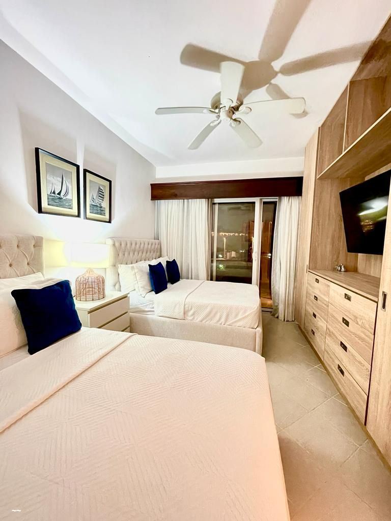 Una joya de propiedad, céntrico y bien ubicado frente a la mejor playa, cerca de bares y restaurantes, muy buena rentabilidad para Airbnb, dos balcones acceso directo desde la habitación principal al balcón, dos piscina en el proyectó, acceso directo a la playa desde el proyecto, planta eléctrica, áreas verdes muy bien conservadas, seguro dentro del mantenimiento