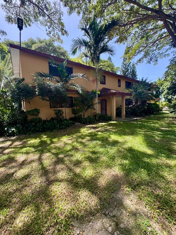 Solar en venta de 6,989.61 m², Cuenta con una villa de 328.00 m² distribuida en dos niveles de construcción Distribución: Primer nivel: Sala, comedor, cocina equipada, ½ baño de visitas, una habitación con baño, y cuarto de servicio. Segundo nivel: Sala de estar familiar, tres habitaciones (una principal con shutter), dos baños completos. Facilidades: Piscina con jacuzzi y sistema de bombeo/filtro. Área de BBQ con bar, cocina y dos baños. Gazebo en segundo nivel. Cuarto de depósito. Pared perimetral de 3 metros de altura. Generador eléctrico diésel de 20 kW con tanque y caseta. Protección de hierro en puertas y ventanas.