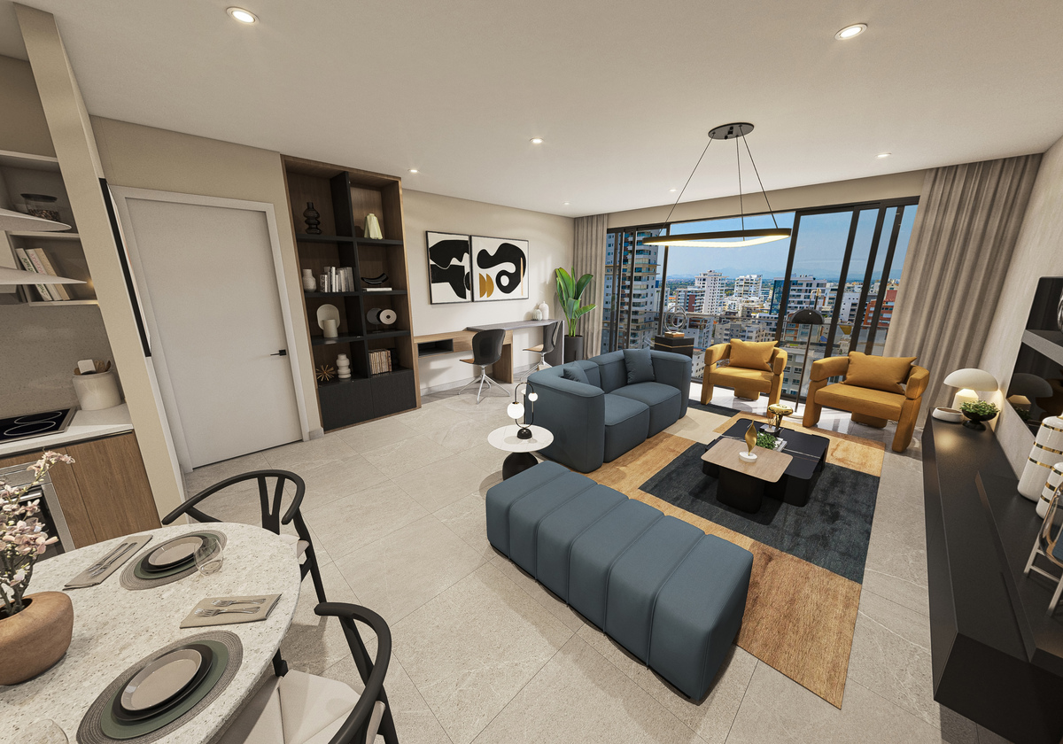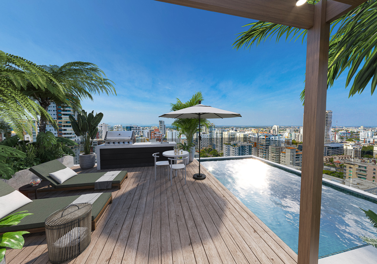 Se ubica en uno de los sectores más privilegiados de la ciudad, Ensanche Piantini. Con variedad de opciones comerciales, gastronómicas y de entretenimiento a escasos minutos de tu futuro hogar. 70.06 mts neto 82.56 mts total Una (1) Habitación Un (1) Estudio flex Dos ( 2) baños Cocina Comedor Sala Terraza Un (1) parqueo techado Lobby climatizado Área social: Gimnasio Piscina BBQ Terraza Coworking Kidsroom Salón de usos múltiples Área de lunch Bar lounge -------------------------------------------------- VENTA. US$259,985.00 Entrega finales del 2028