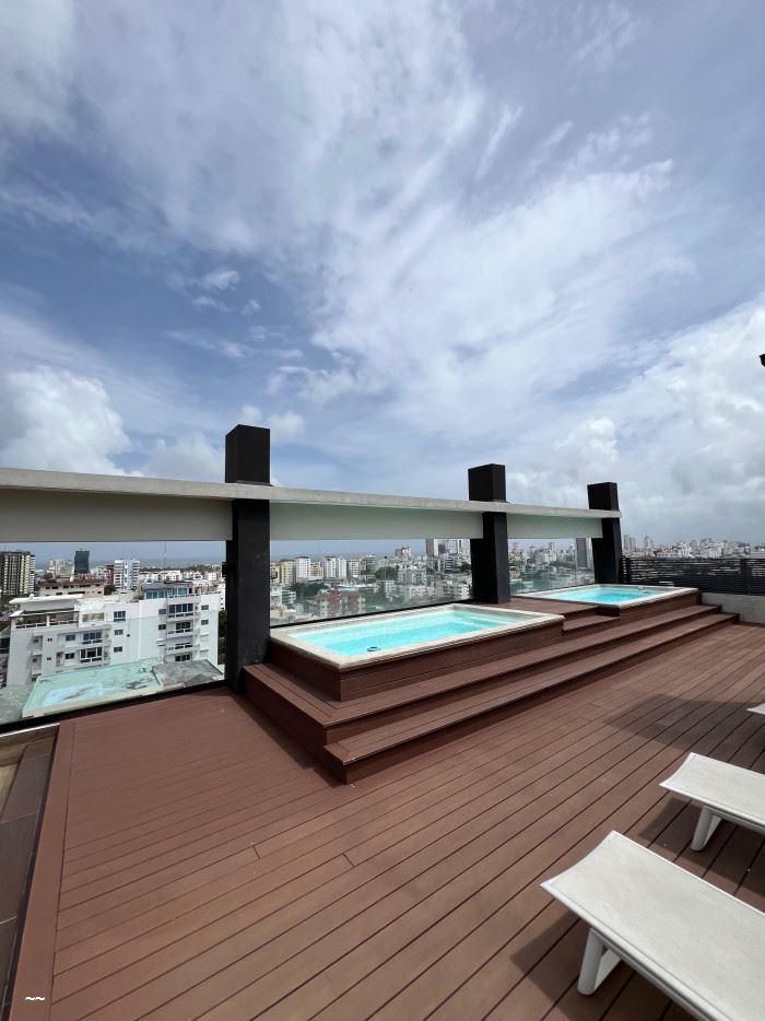 Apartamento en alquiler de 3 habitaciones mas Estudio en El Millon torre de lujo próximo a la Núñez de Cáceres y la 27 de febrero Características: 3 Habitaciones cada una con sus baños (Principal con amplio walking closet) Recibidor Sala Balcon Comedor Estudio Cocina Área de lavado Habitación de servicio 2 closet de ropa blanca La Torre cuenta con: 3 Ascensores Lobby de lujo climatizado 2 Picuzzis con vista al mar Terreza con vista 360 a toda la ciudad Area de BBQ CLAVE INTERNA PAA-011-04-25
