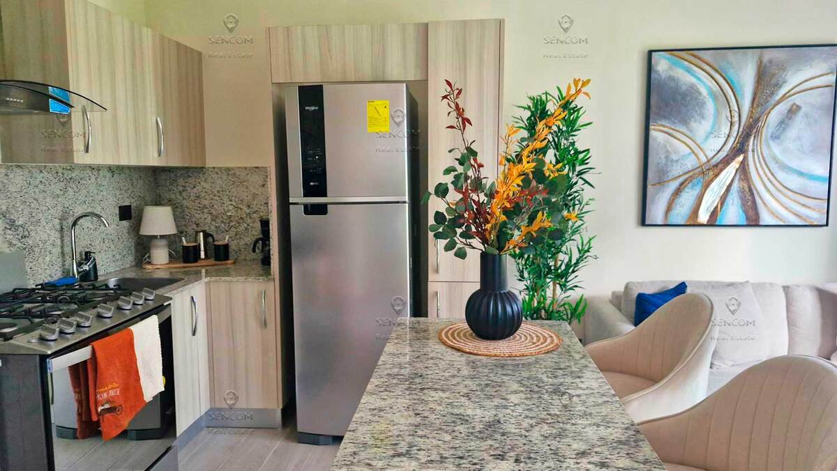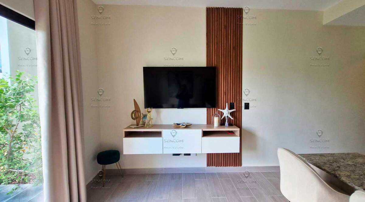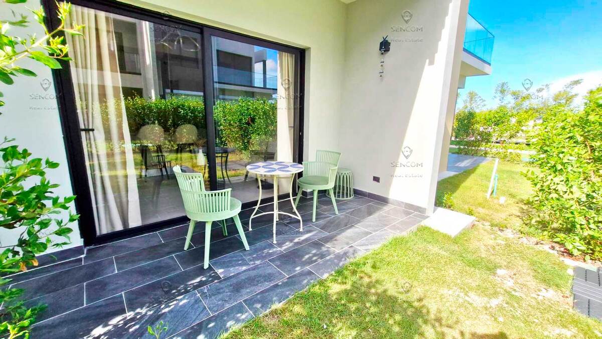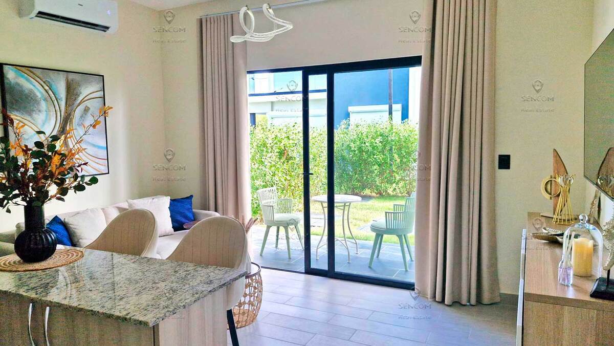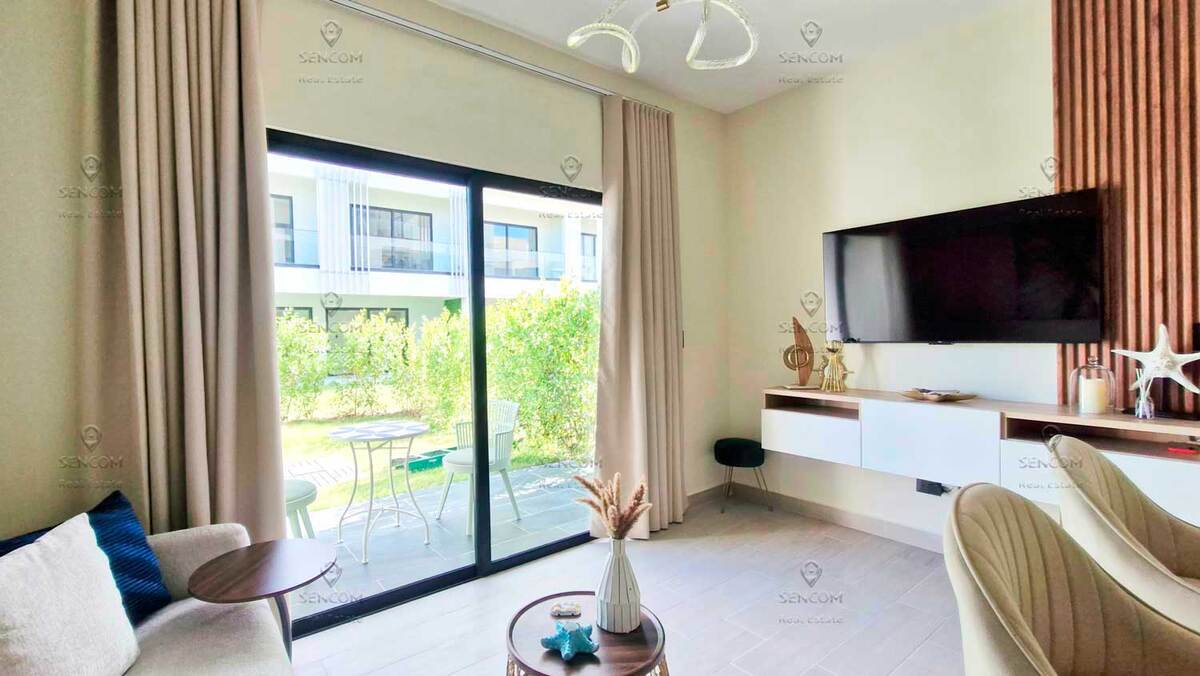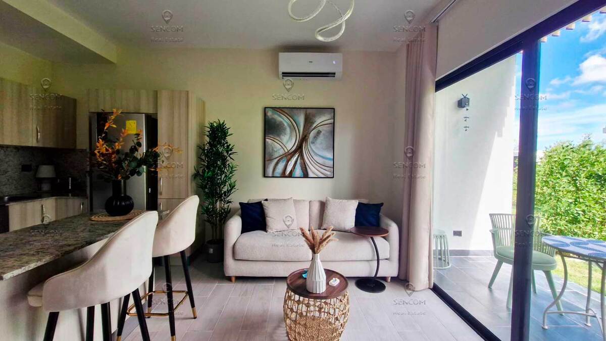 Elegante y completamente renovado, este apartamento de una habitación se encuentra en la planta baja de la residencia Panorama Garden, Vista Cana, y cuenta con un acogedor jardín al que se accede directamente desde la terraza. La sala de estar dispone de un sofá cama, ideal para recibir invitados. Vista Cana es la realización de la vida soñada. Este enorme complejo residencial cerrado ofrece todas las comodidades: un lago artificial pintoresco, restaurantes, campo de golf, senderos ecológicos, cafetería y mucho más. La residencia Panorama Garden cuenta con una zona social cuidadosamente diseñada: amplio lobby, piscina elegante, cafetería, gimnasio, así como canchas de mini-golf y fútbol. Distribución y equipamiento del apartamento: - Cocina-sala de estar - Terraza con acceso al jardín - Habitación con baño privado - Pasillo - Baño de visitas - Dos aires acondicionados - Dos televisores - Lavadora-secadora - Calentador de agua a gas Bienvenido a Panorama Garden, Vista Cana!
