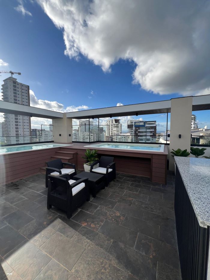 CityMax Santo Domingo Apartamento en Torre ubicada en el centro de la ciudad con parque al lado, donde la palabra exclusividad estará a su máxima expresión, Zona tranquila donde tienes la oportunidad de vivir aun mejor y mas cómodo, en este elegante y moderno proyecto, costa de 10 niveles 9 niveles de apartamentos y el ultimo nivel de area social. Apartamentos 100% rentable para AIRBNB. 4 apartamentos por nivel su ubicación es uno de los grandes privilegios que brinda este hermoso proyecto, más que un proyecto un habitad de vida. El Apartamento cuenta con: 1 Habitación Sala Comedor Habitación Principal Con Closets Y Baño Àrea De Lavado 1/2 Baño De Visita Cámaras De Seguridad Portón Eléctrico Pozo Tubular Agua Potable Sistema De Purificación De Agua Lobby Amueblado 1 Parqueos Área Social: Rooftop 2 Jacuzzi Gimnasio 2 Ascensores De Ultima Generación Planta Full Gas Común Con Medidor CLAVE INTERNA PVA-009-06-21-2