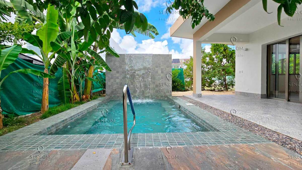 Sumérjase en un mundo de confort y serenidad tropical en esta lujosa villa de dos niveles! Descubra un estilo de vida lleno de comodidad y vegetación tropical en esta exclusiva villa de dos pisos, donde cada detalle está diseñado para su conveniencia y disfrute. La villa se encuentra en uno de los complejos más solicitados de la costa este — Punta Cana Village. Al entrar al hogar, sentirá una atmósfera de calidez y armonía. Desde la espaciosa sala con ventanas panorámicas, podrá salir directamente a la terraza con árboles frutales tropicales, piscina y cascada. También puede disfrutar de una ducha al aire libre rodeada de exuberante vegetación, creando una perfecta sensación de armonía con la naturaleza. VENTAJAS DE LA UBICACIÓN La ubicación de la villa en Puntacana Village la convierte en una verdadera joya. A poca distancia a pie se encuentran restaurantes y bares, así como bancos, tiendas, salones de belleza, spas, clínicas, laboratorios y mucho más. A solo tres minutos en coche se ubican el supermercado Nacional, el centro comercial BlueMall Punta Cana y el Aeropuerto Internacional de Punta Cana. PRIVILEGIOS EXCLUSIVOS PARA RESIDENTES Los residentes del complejo tienen acceso a la exclusiva Playa Blanca con arena blanca, aguas cristalinas y restaurante frente al mar. DISTRIBUCIÓN DE LA VILLA Primer Piso: - Cocina fría - Cocina caliente - Sala de estar - Comedor - Baño de visitas - Habitación de servicio con baño y abanico - Despensa - Dormitorio - Terraza con piscina, cascada y jardín - Seis espacios de estacionamiento (3 techados) Segundo Piso: - Dormitorio principal con baño en suite y vestidor - Dos dormitorios con baños en suite y vestidores - Estudio ELECTRODOMÉSTICOS Cada espacio de la villa cuenta con aire acondicionado. La propiedad incluye dos refrigeradores, dos cocinas, lavavajillas, lavadora y secadora, campana extractora, así como un refrigerador para vinos independiente para su colección. TERMINACIONES - Baños totalmente terminados con nicho iluminado y mamaparas de cristal - Gabinetes de roble con luces led integradas y espejos - Walking closet moderno de melamina hidrofugo con luces led integrada y cierres amortiguados - Gabinetes de melamina hidrofugo con luces led integrada y tope de cuarzo - Plafon moderno en la cocina, fascia iluminada con luces led - Jardin frontal con sistema de riego e iluminacion automatizada - Patio con piso de porecelanato - Puertas interiores de roble maciso de 2” de espesor - Aqua caliente proveniente de dos calentadores (uno solar y otro de gas) - Puertas y ventanes interiores: corredizas, cristal y aluminio, terminacion inox - Escalera metalica revestida de roble y baranda de cristal
