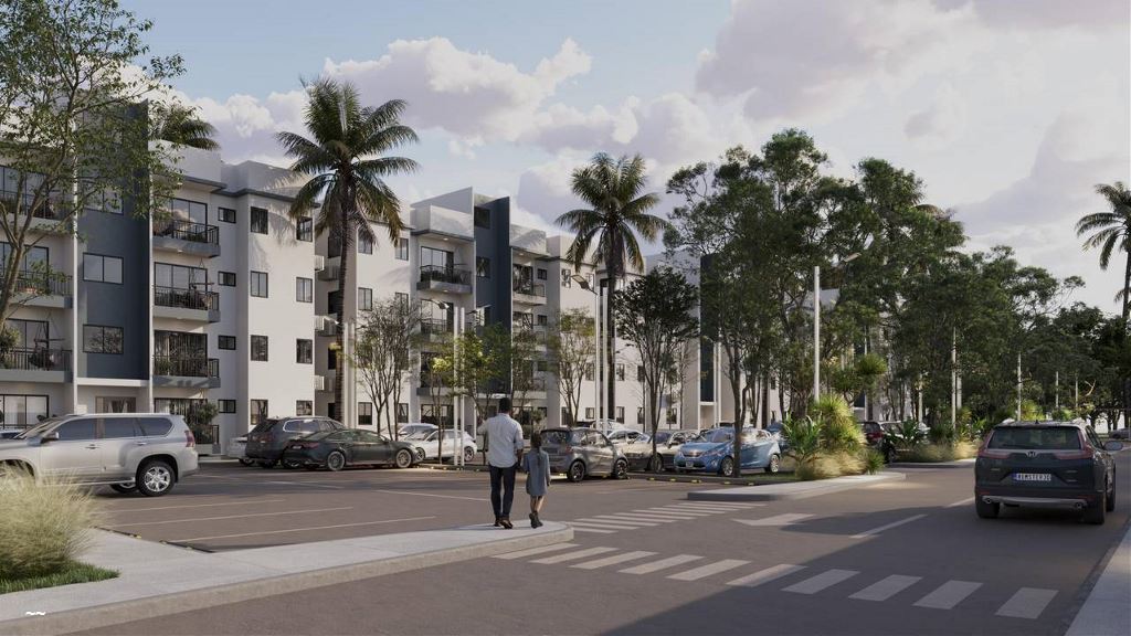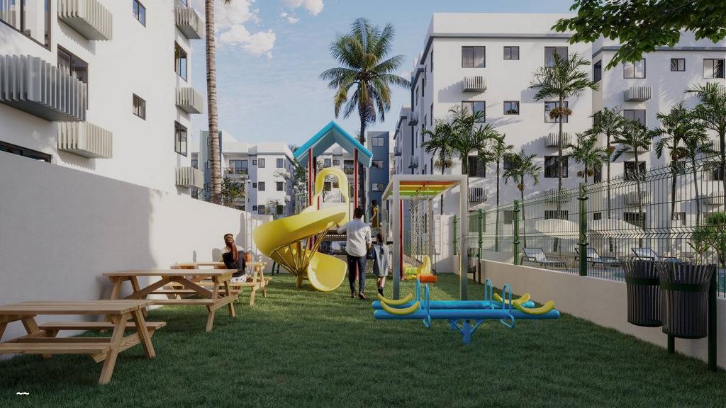 Es un proyecto residencial diseñado para ofrecerte la mejor combinación de calidad de vida, seguridad y accesibilidad. Ideal para familias y profesionales que buscan dar el paso hacia su primer hogar. Respaldo garantizado: Desarrollado por un Grupo, con más de 7 años de experiencia en construcción, y bajo la seguridad de Fiduciaria La Nacional, lo que garantiza seriedad, cumplimiento y confianza en cada etapa del proceso. Comunidad moderna: 192 apartamentos distribuidos en bloques de 4 niveles (16 por edificio, 4 por piso), con espacios pensados para maximizar comodidad y funcionalidad. Más que una vivienda, un estilo de vida: aquí encontrarás un ambiente de tranquilidad, modernidad y armonía, donde cada día se convierte en un nuevo comienzo. Ubicación: Prolongación Av. Los Beisbolistas, Santo Domingo Oeste. 2 min – Club de la Superintendencia 10 min – Av.Prolongación 27 de Febrero 10 min – de Occidental Mall 10 min – de La Sirena Prolongación 27 10 min – Estación Sigma 10 min – Bancos 10 min – Plaza Cuadra 12 – Estación del Metro Características del proyecto: Residencial privado Garita de seguridad Portón vehicular eléctrico Puerta peatonal con llave (Acceso controlado) Cisterna y equipo de bombeo por etapa Gas común Transformador Calles y aceras amplias Cuarto de desechos Piscina Gazebo (casa club) con cocina y baños Parques infantiles Zonas de picnic Pet friendly Airbnb friendly Jardines UNIDADES DE 2 Y 3 HABITACIONES Tipo A – Departamentos de 74 m² 3 habitaciones (la principal con baño) 1 baño común Sala, comedor y cocina integrados en un diseño abierto y funcional. Balcón privado para disfrutar momentos especiales. Área de lavado y estacionamiento designado. Unidades exclusivas: Primer nivel con patio privado de hasta 37.77 metros cuarto nivel con terraza privada de 27.7 metros Tipo B – Departamentos de 58 m² 2 habitaciones (la principal con baño) 1 baño común Sala, comedor y cocina integrados en un diseño abierto y funcional. Unidades exclusivas: Primer nivel con patio privado de hasta 37.77 metros Cuarto nivel con terraza privada de 27.7 metros. Plan de pago Con la firma 5%, En 30 días luego de realizado el pago de la Reserva En construcción 20%, Para pagar en hasta 30 cuotas desde $350 USD. Contra entrega 75% Entrega en marzo de 2028 PROYECTO BAJO LEY DE FIDEICOMISO
