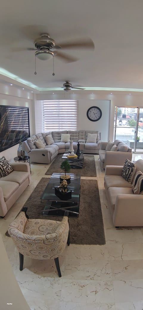 Vive el equilibrio perfecto entre estilo, amplitud y comodidad en este espectacular apartamento de 216 m² ubicado en el exclusivo sector Evaristo Morales. Cada detalle ha sido diseñado para brindar una experiencia residencial de alto nivel: 3 amplias habitaciones, cada una con su baño privado 3 parqueos techados Cuarto de servicio con baño Amplia sala y balcón ideal para disfrutar al aire libre Área social con piscina, gimnasio y espacios para compartir Lobby amueblado, conserjería y seguridad 24 horas Gas común y 2 ascensores para mayor comodidad Ubicado en el 3er piso de un edificio moderno y bien cuidado, este apartamento ofrece la combinación perfecta entre lujo, funcionalidad y ubicación estratégica. Evaristo Morales, uno de los sectores más demandados de Santo Domingo: cerca de centros comerciales, restaurantes, bancos y las principales vías de la ciudad.