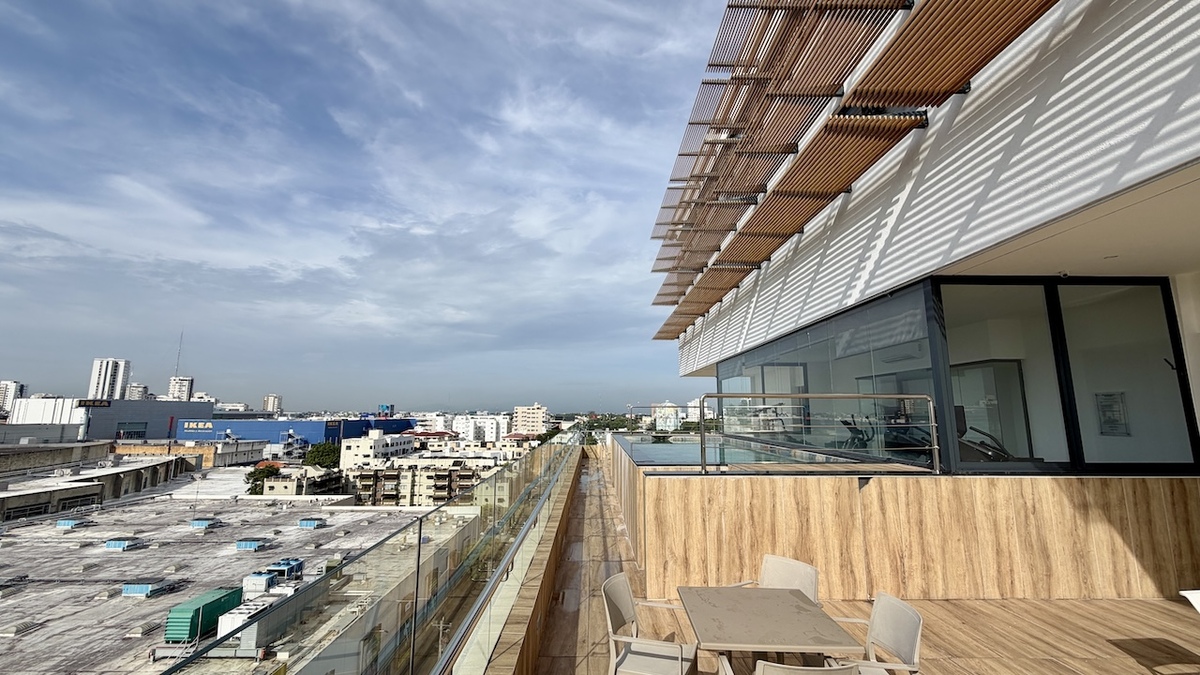 Caracteristicas De La Torre - Torre de apartamentos de 10 niveles - Dos (2) elevadores - Planta eléctrica - Gas común para Horno, Estufa, Calentador de agua y Secadora - Portón electrico - Sistema de Cámara de vigilancia en las áreas comunes - Area Social compuesta por o terrazas amueblada piscina o baños sociales o gimnasio equipado y climatizado o Area de niños o lobby amueblado con vigilancia 24 horas en 1er. Nivel o Piscina Caracteristicas Del Apartamento - Piso 8 - 60 mt2 - 1 Parqueo - Medio baño de visita - Sala – Comedor – Cocina - Balcón - Habitacion con baño y balcon y Walk-in Closet - Precio alquiler: US$$800