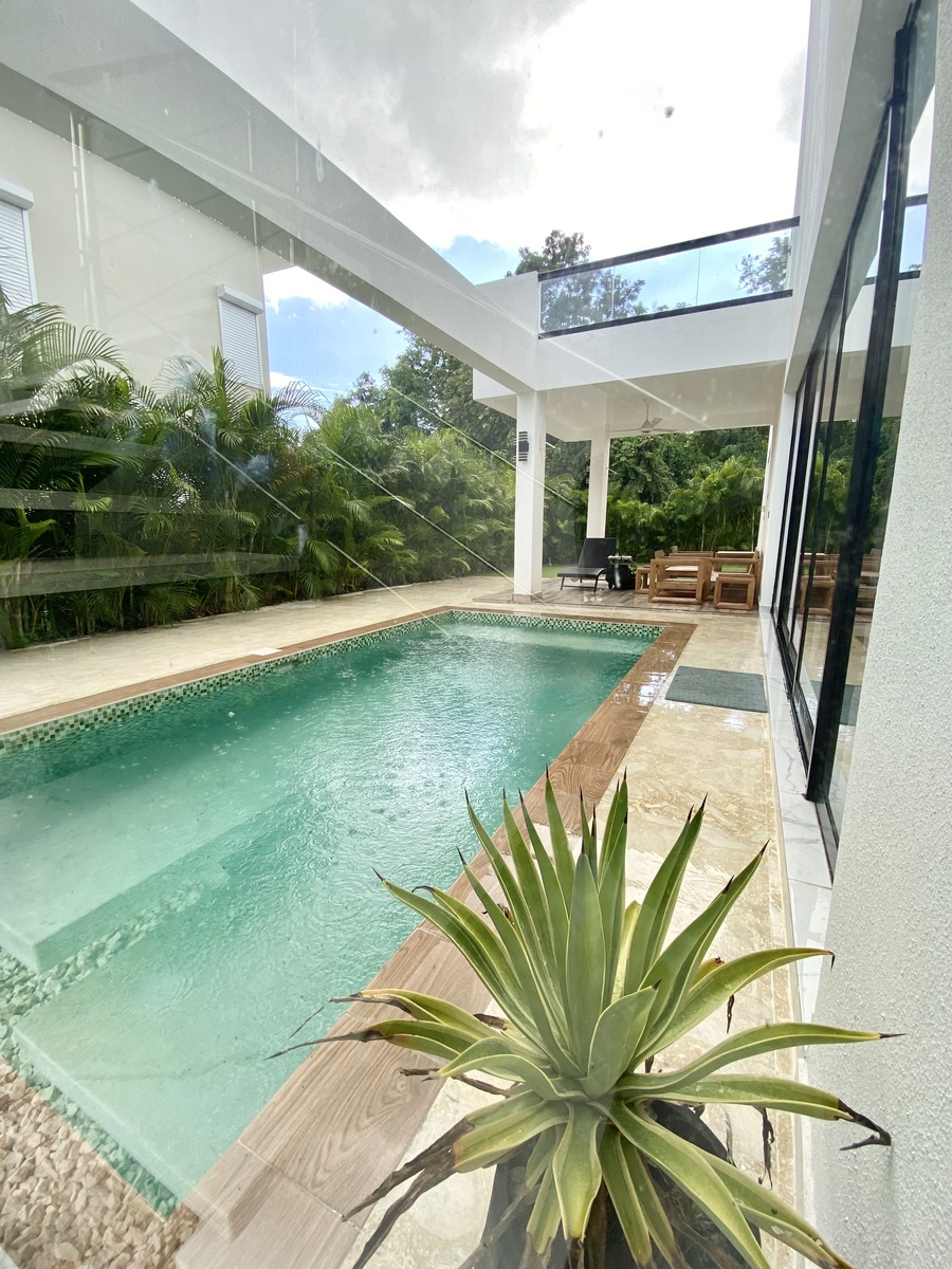 Se renta Hermosa Villa en Playa Nueva Romana 4- Dormitorios 4.5 Baños Sala Comedor Cocina Amplia piscina Gazebo Área de lavado Parqueo con capacidad para 2 vehículos 550 mts de terreno 260 mts de construcción Precio de Alquiler: US$2,700