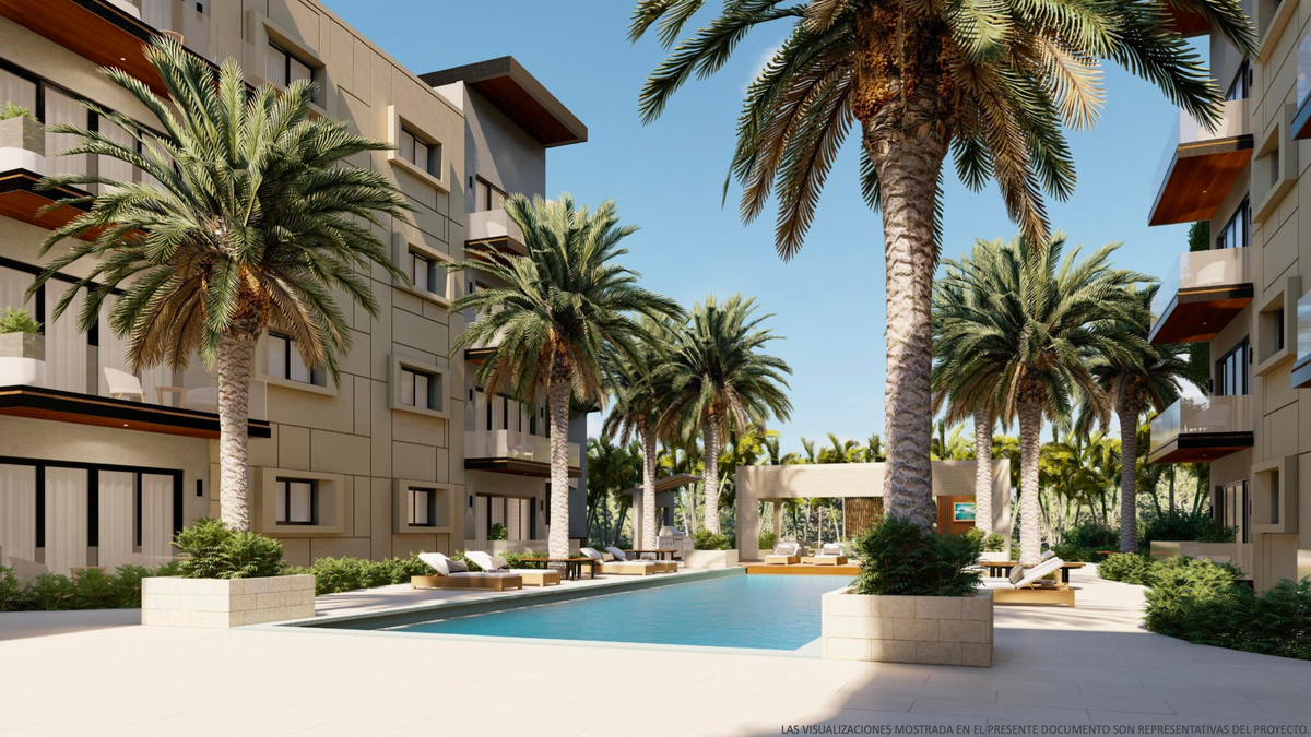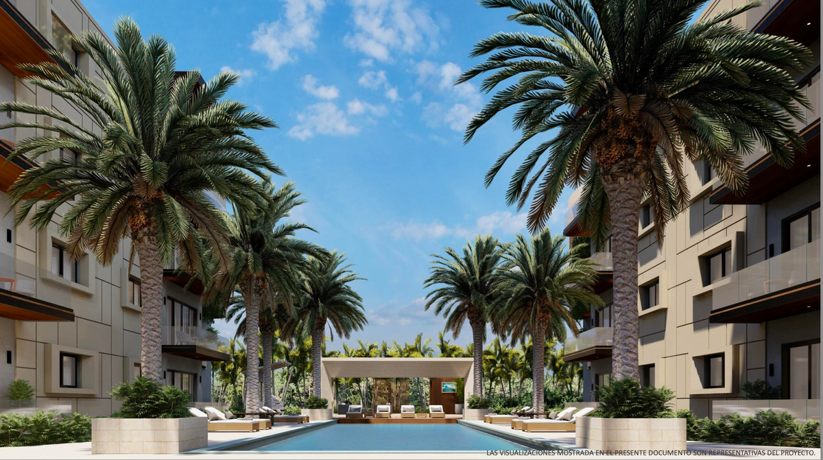 Complejo residencial que armoniza la calidad de los espacios, la esencia de la arquitectura moderna y el Smart living. Enfocado en el usuario moderno, con la principal intencion de permitirle disfrutar de la tranquilidad, bienestar, seguridad y calidad de vida que demandan estos tiempos. Cuenta con un majestuoso lobby, disenado para cautivar al usuario desde su llegada, el cual le da la bienvenida a los 3 bloques de edificios que componen el Master plan general del proyecto. Cada bloque cuenta con cuatro niveles de apartamentos de 1 y 2 habitaciones, que se caracterizan por su contacto con el exterior, iluminacion natural y ventilacion cruzada, ademas de una muy funcional distribucion interior y amplios balcones con vistas privilegiadas al area comun y al hermoso paisaje que posee la zona. Su principal amenidad es una maravillosa y amplia área común compuesta de una gran piscina, gazebo lounge, solárium, área para BBQ, Gimnasio y parque infantil. Un valor agregado del proyecto es la inclusion de Rooftops en las unidades del ultimo nivel, las cuales disfrutaran de una vista espectacular del area comun y todo el entorno en el que se encuentra el proyecto. La esencia conceptual del proyecto esta influenciada por el valor que aporta la integracion de tonos calidos y frescos, los cuales se combinan en texturas con los jardines que adornan toda el area comun y el perimetro general del emplazamiento. Logrando una envolvente dinamica y moderna que cobija en su interior espacios permeables y equilibrados. Programa de áreas Altura total 4 pisos. Total de apartamentos 98. Apartamentos de 1 y 2, habitaciones. 10 tipologías de apartamentos A, B, B1, C, D, E, F, G, H, I. Salón multiusos, gazebo con BBQ, área infantil, piscina, salón de juegos, gimnasio, área de mascotas. Acceso peatonal y vehicular a estacionamiento, área de piscina con solárium, gazebo, barbacoas, parque infantil, áreas verdes. Ubicación Lugares de interés Playa: 8 min Shopping Mall: 10 min Supermercado: 4 min Bancos: 4 min Downtown: 20 min Aeropuerto: 10 min Hospital: 10 min Estación de servicio: 8 min Fecha de entrega: Agosto 2026