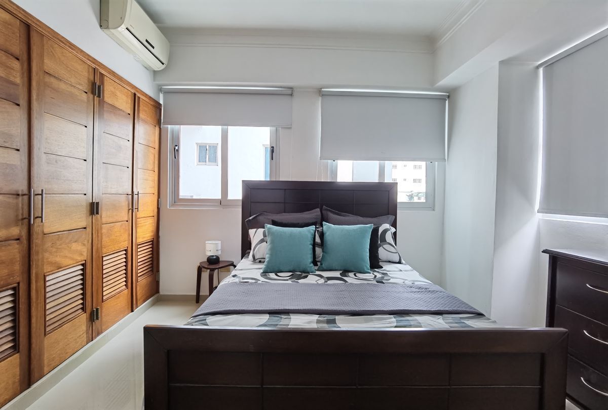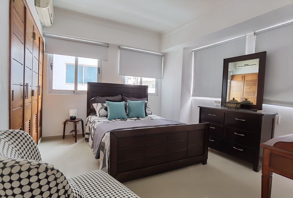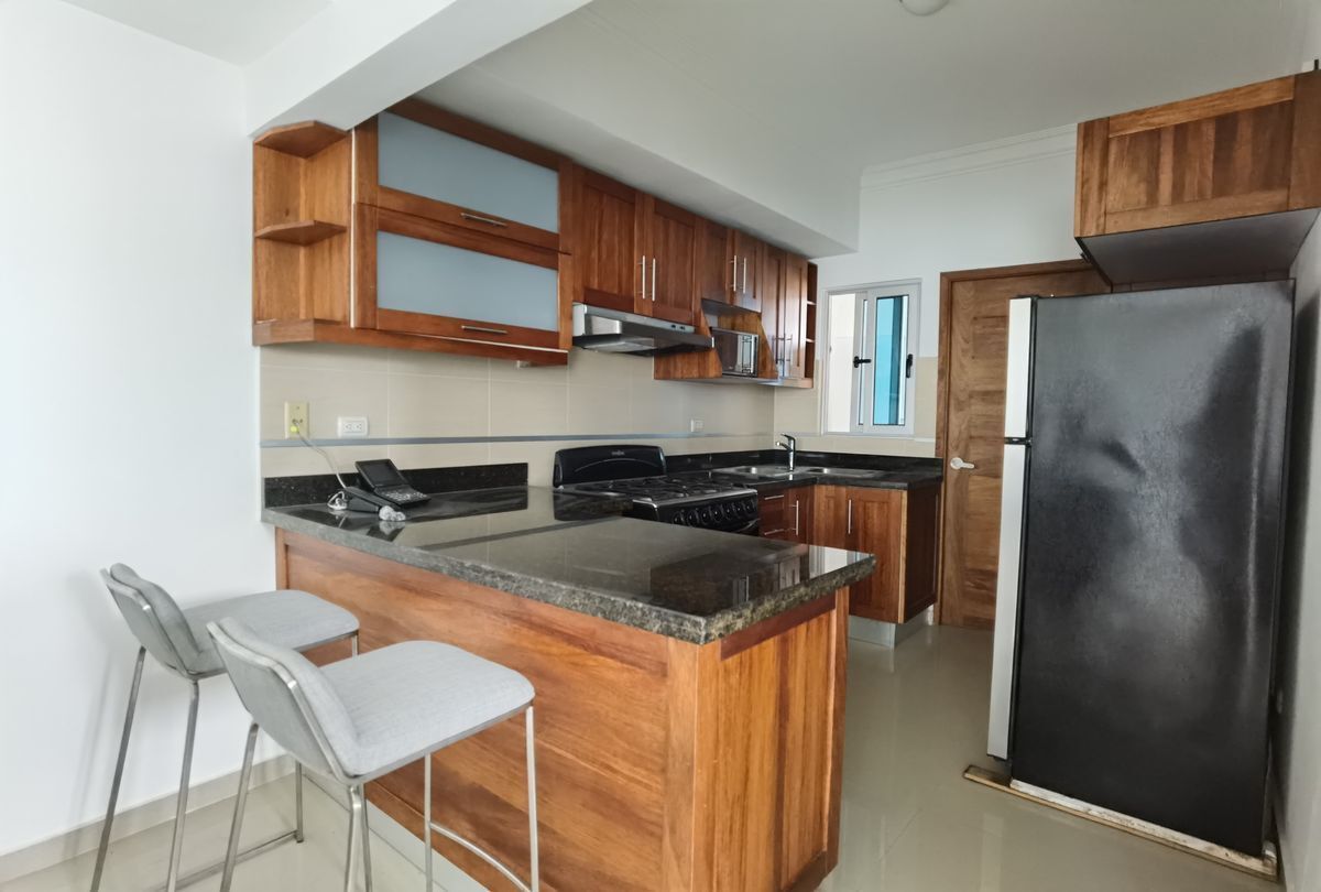 Se alquila comodo y acogedor apartamento amueblado de una habitación en Torre moderna a tan solo una cuadra de la avenida Winston Churchill. 1 Habitación 1 Baño 1/2 baño de visita Sala Comedor Desayunador Cocina Area de Lavado Lobby Climatizado Gym Area BBQ Salon actividades 2 parqueos lineales Gas común Planta Full Ascensor 1 esquina de la Winston Churchill Amueblado Full US1,100 (mantenimiento incluído)