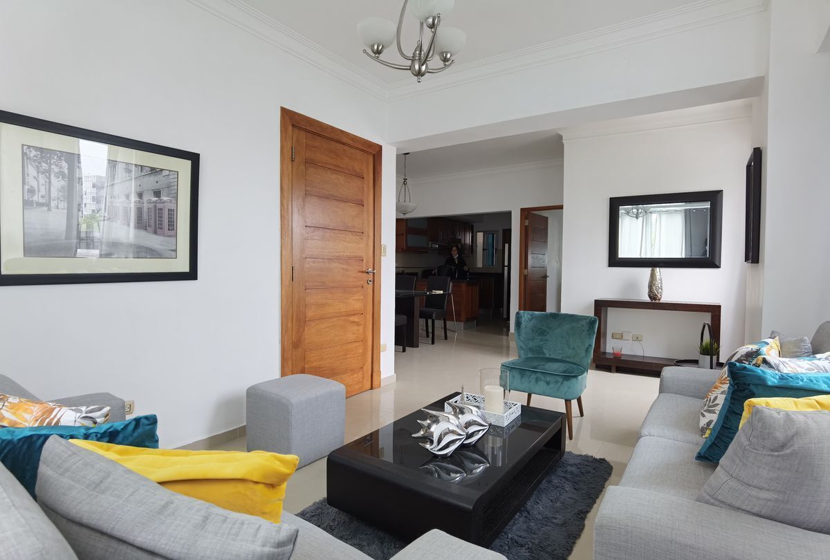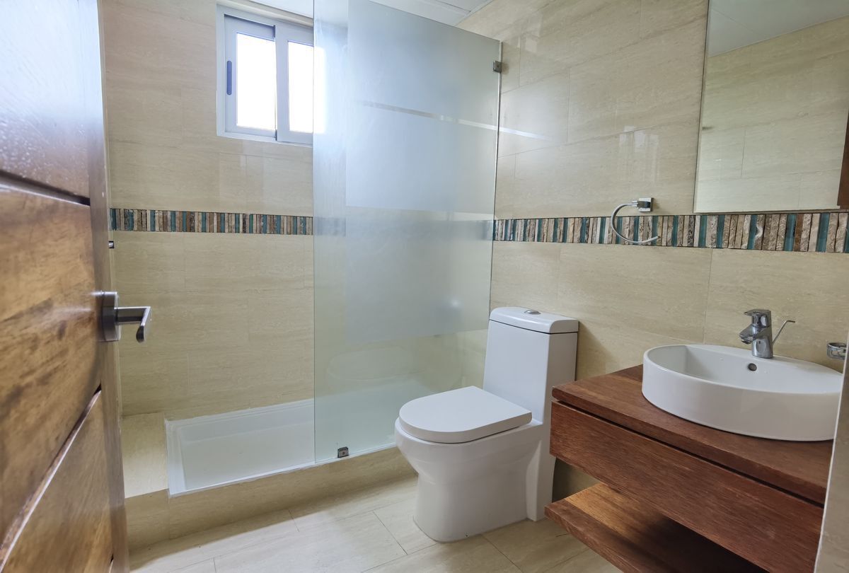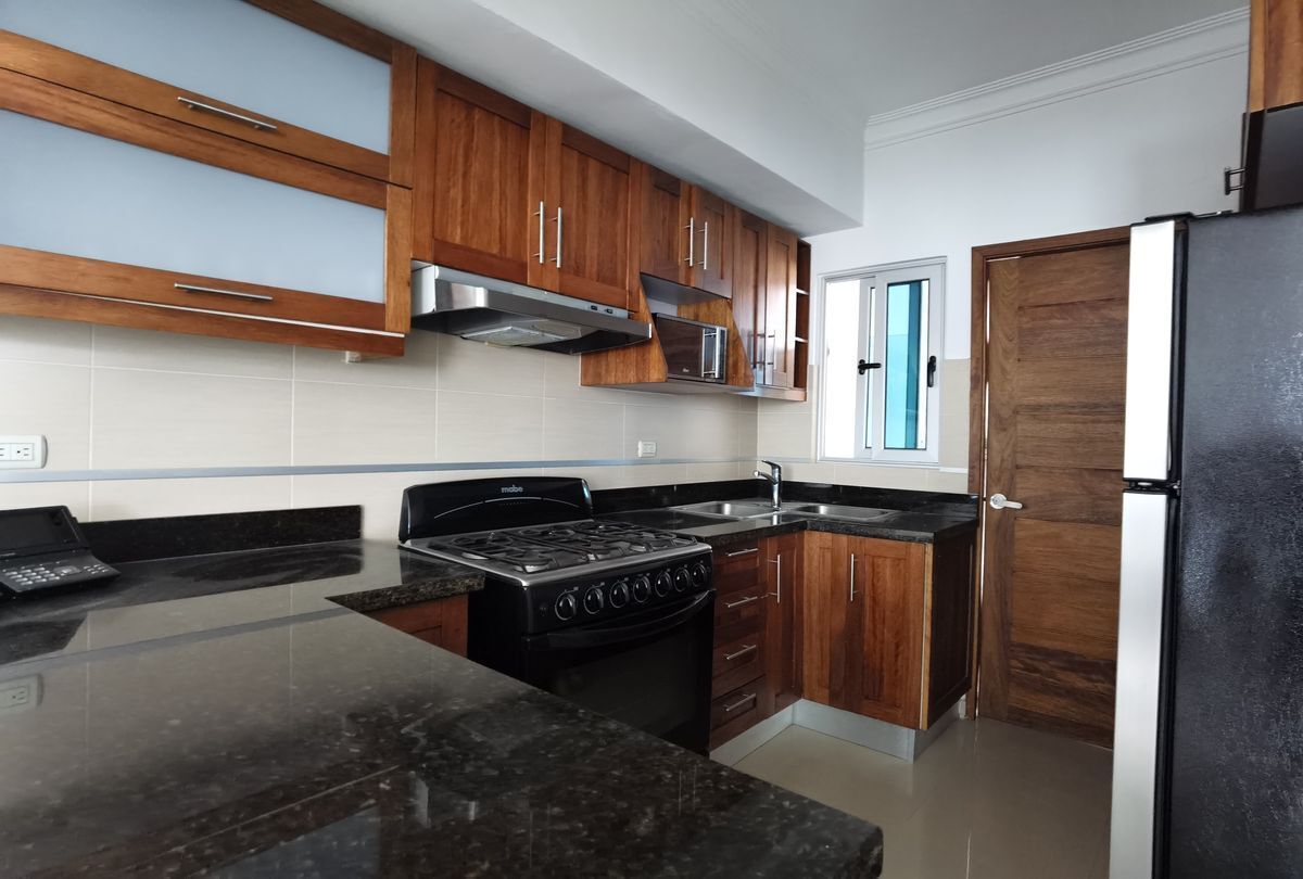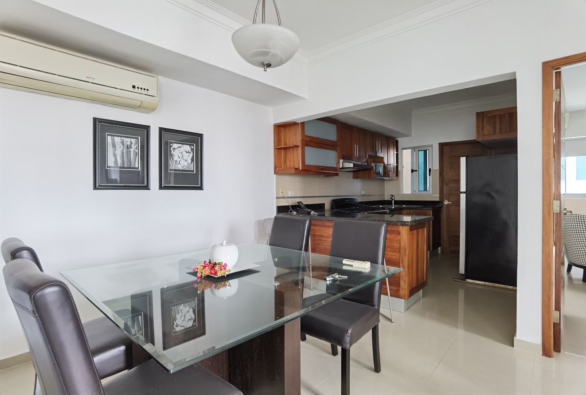 Se alquila comodo y acogedor apartamento amueblado de una habitación en Torre moderna a tan solo una cuadra de la avenida Winston Churchill. 1 Habitación 1 Baño 1/2 baño de visita Sala Comedor Desayunador Cocina Area de Lavado Lobby Climatizado Gym Area BBQ Salon actividades 2 parqueos lineales Gas común Planta Full Ascensor 1 esquina de la Winston Churchill Amueblado Full US1,100 (mantenimiento incluído)