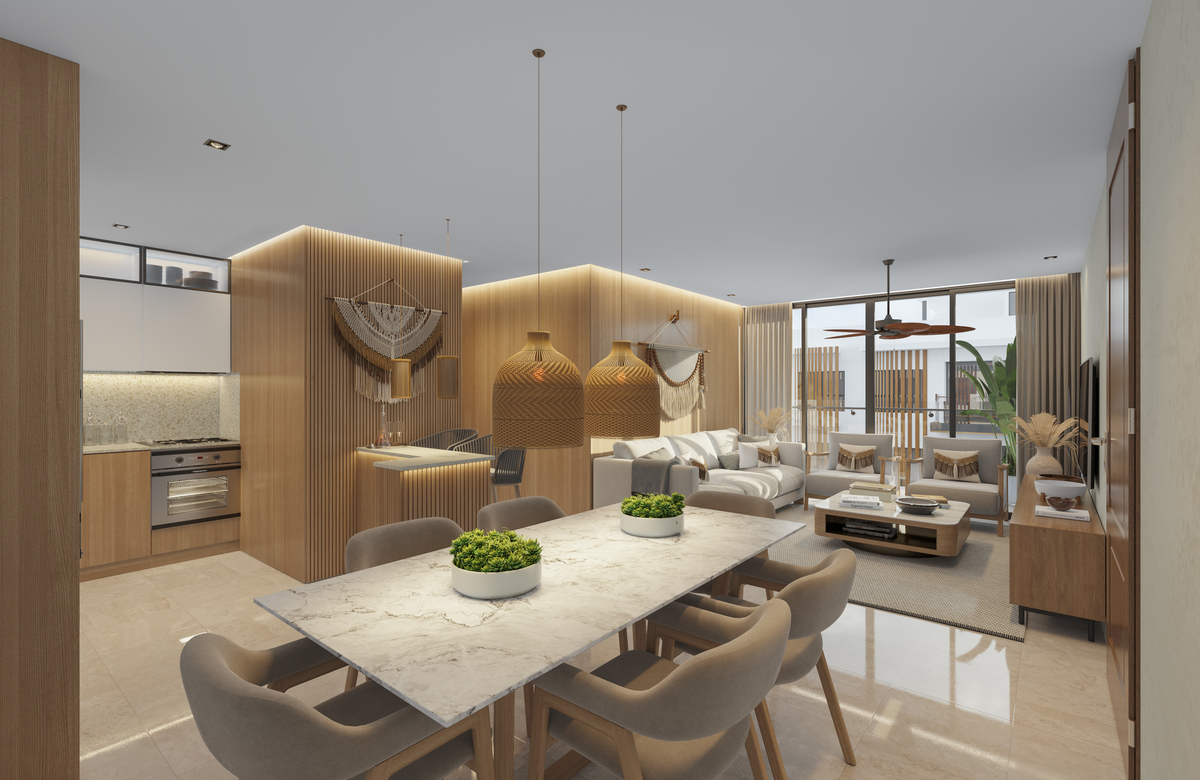 Inspirándose en la naturaleza y el buen vivir dentro de la ciudad, nace un proyecto familiar ubicado en el Sector de Arroyo Hondo Viejo. Conceptualizado como un refugio urbano dentro de la ciudad, en el que se desarrollará un parque en el centro del proyecto para ejercitarse y recrearse. Este espacio verde aportará calidez y experiencias sensoriales a través de la naturaleza, buscando generar una atmósfera distinta para sus futuros habitantes, aportando un lugar donde vivir y al mismo tiempo espacios recreativos a sólo un paso. Con unidades residenciales que van desde los 57 m2 hasta los 123.77 m2. Una de las ventajas del proyecto es su ubicación estratégica; a solo dos minutos de Patio Chiquito y del nuevo Supermercado Nacional, así como también a múltiples restaurantes, tiendas, centros comerciales, gimnasios y centros educativos. Características: * Uno o dos parqueos, dependiendo de la unidad. * Sistemas de cámaras de vigilancia que controlan los accesos, perímetros y zonas comunes del proyecto. * Área de yoga. * Piscina privada en el área social del primer nivel. * Solarium frente a la piscina. * Amplia terraza en el área de la piscina con BBQ tipo argentino y horno de pizzas. * Planta eléctrica total cobertura * Extintores y gabinetes para supresión de incendios. * Sistemas de Intercom / Portones eléctricos. * Sistemas comunes de suministros (gas común y agua). Plan de pago. Reserva con US$1,000 10% a la firma del contrato 30% durante construccion 60% contra entrega Fecha de entrega. Agosto 2026