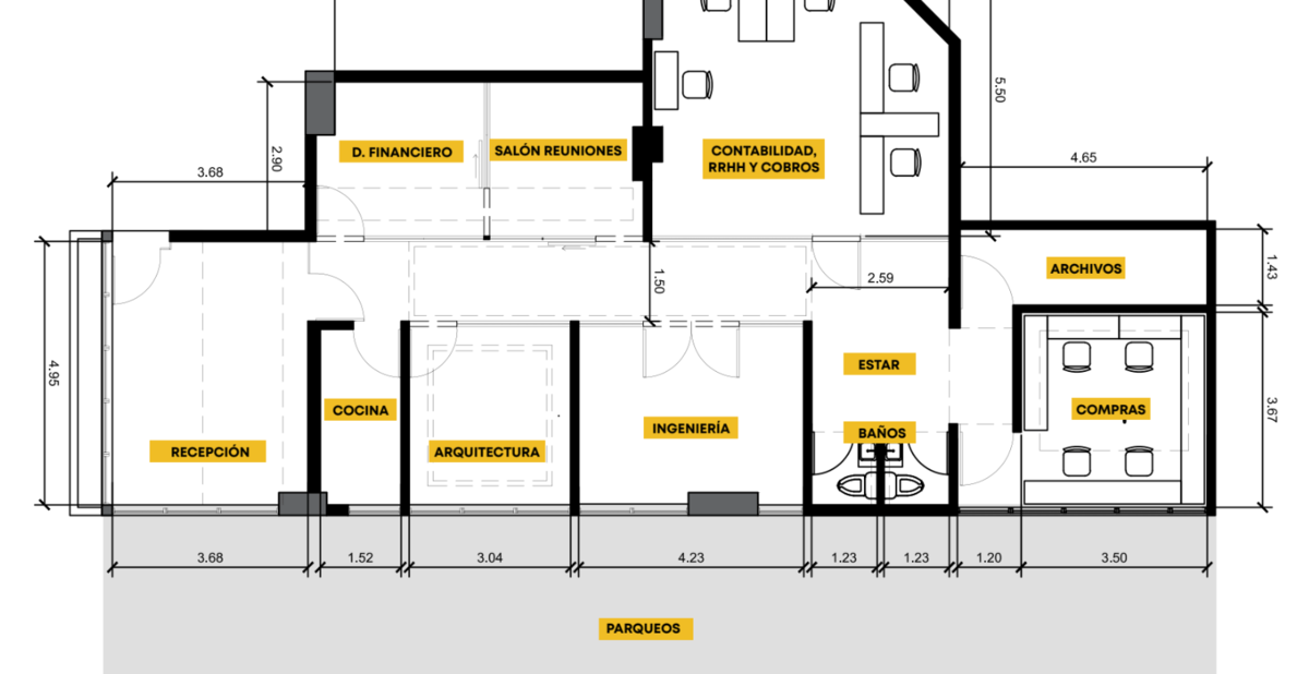 Amplio local y deal para oficinas con mobiliario y decoración profesional * Recepción * Área de compras * Área de arquitectura * Área de contabilidad * Salón de conferencias * Kitchenette * 2 baños * 8 parqueos * 4 lockers * Instalación de automatización y sonido * Aires acondicionados * Sistema de supresión de incendios * Sistema de alarmas y cámaras de seguridad.