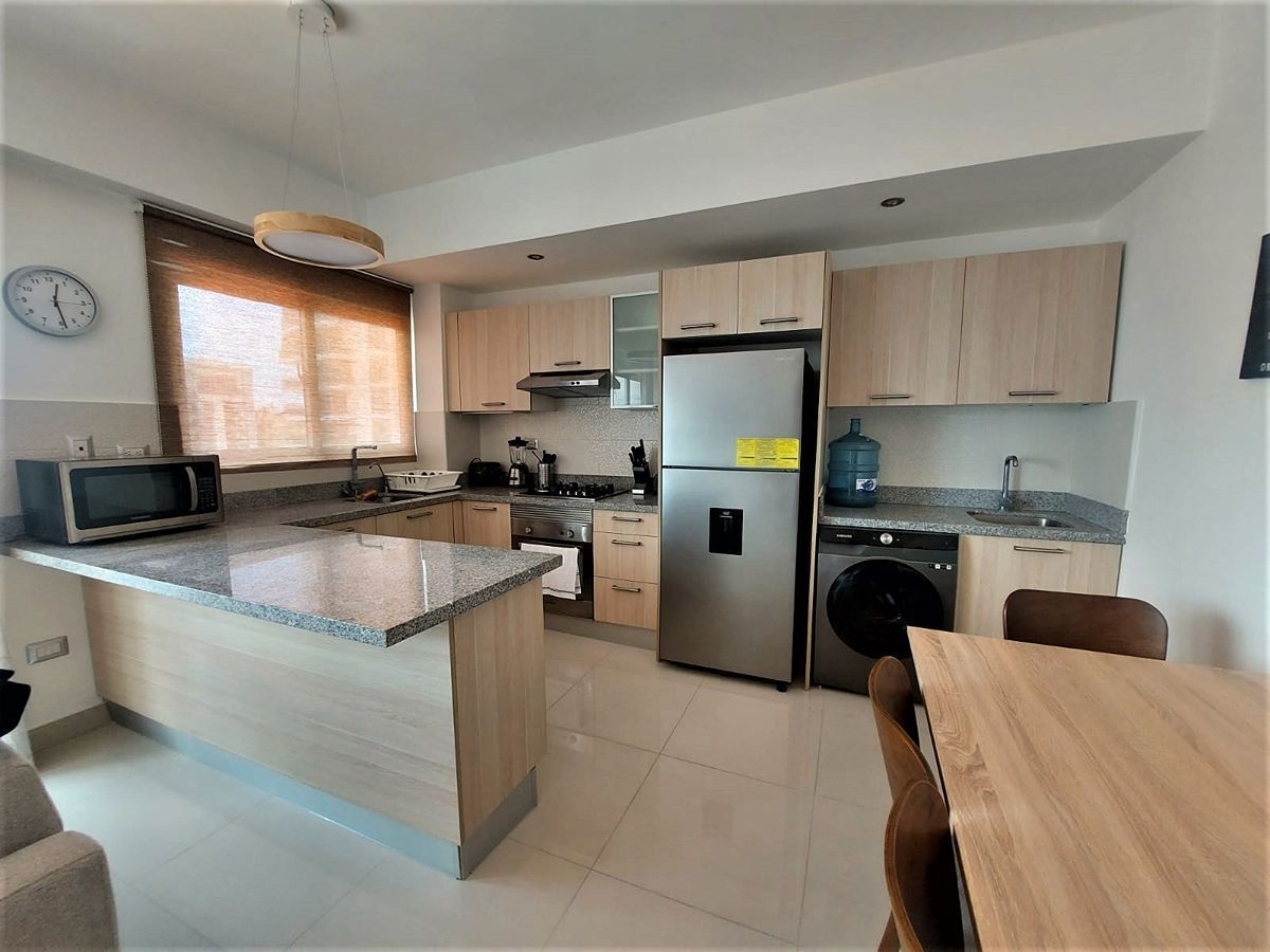 ALQUILO APARTAMENTO AMUEBLADO EN PIANTINI 57mts 1 Dormitorio 1 Baños Closet Sala-Comedor Balcón Cocina con desayunador Área de lavado 1 Parqueo techado 2 Ascensores Planta Eléctrica Full Portón Eléctrico Gas Común Pre-Instalación de A/C 2 Bombas de Agua Area comun con terraza y gimnasio Precio de alquiler amueblado US$1,050 incl. Mantenimiento