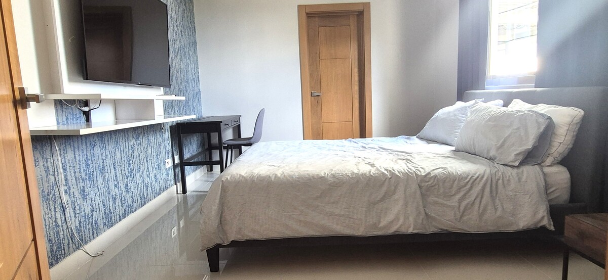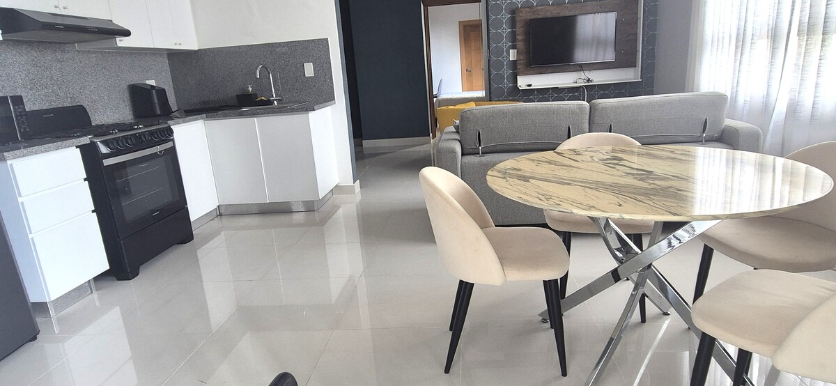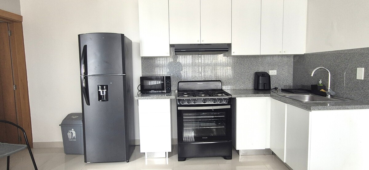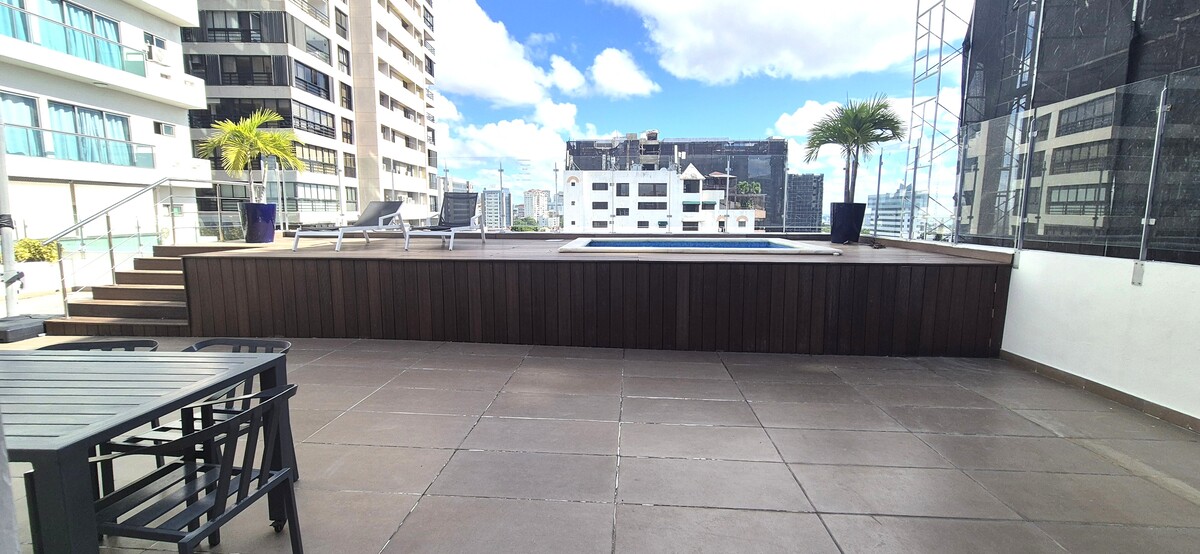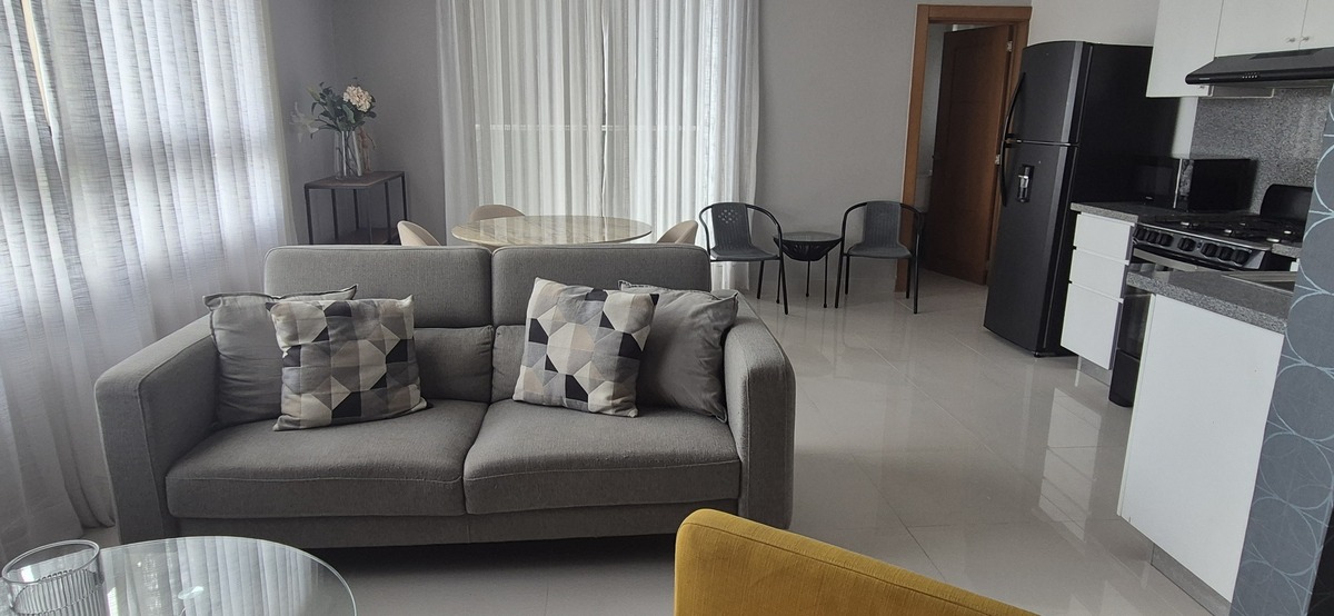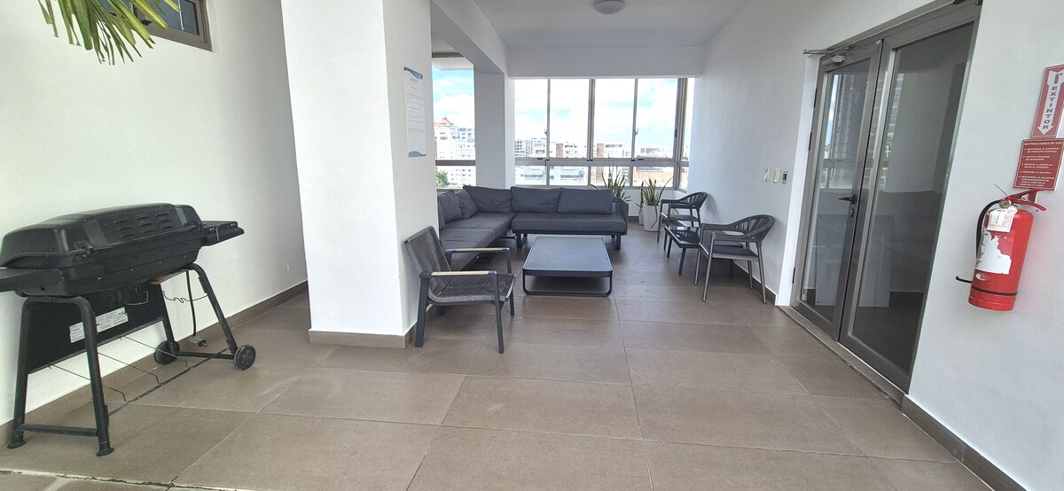 Ubicado en una torre moderna próximo a la PUCMM, supermercados, plazas comerciales, malls, restaurantes y todo lo necesario para vivir con comodidad. Renta mínima: 6 meses. Este acogedor apartamento está situado en el 5to piso y cuenta con 74 m² aprox., distribuidos en: - Recibidor - Medio baño para visitas - Sala–comedor–cocina integrados - Área de lavado cerrada - Balcón - Habitación principal con baño y walk-in closet - 1 parqueo techado asignado La torre (6 años de construcción) ofrece: - Ascensor - Planta eléctrica full - Gas común - Lobby - Gimnasio - Jacuzzi - Terraza techada con BBQ - Terraza destechada - Baños comunes Terminaciones: porcelanato, madera preciosa, cerradura digital. Precio de alquiler: US$1,700 (incluye mantenimiento). ¡Coordinemos una visita! Llámame.