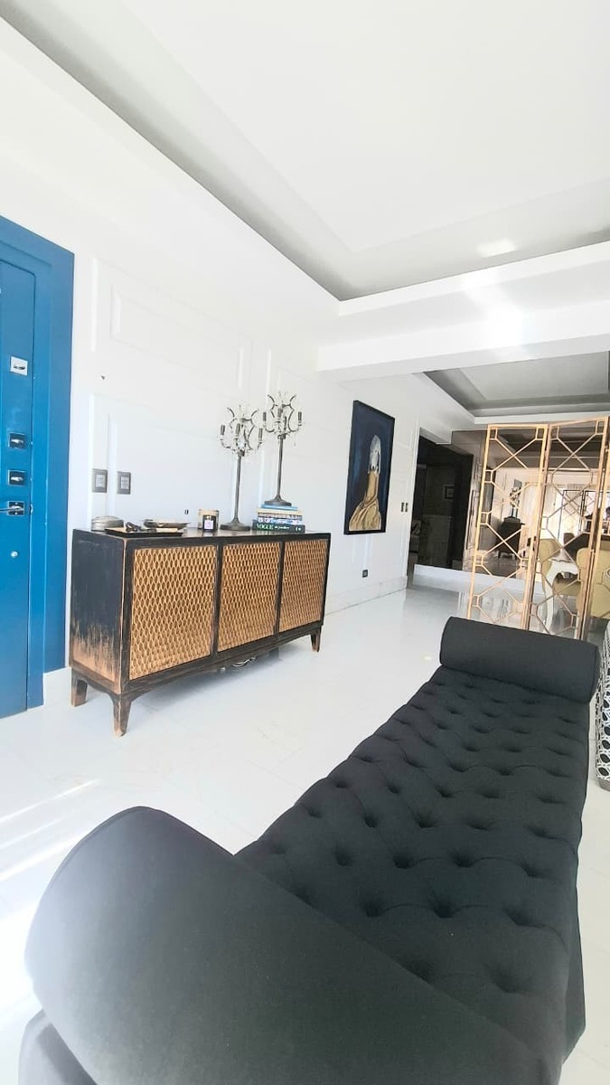 9no piso 180 Mt2 2 parqueos techados 2 habitaciones con walk-in closets. Family room 3.5 baños Balcón con vista despejada Sala Comedor Cocina cerrada Family Oficina Área de lavado Habitación de servicio 2 ascensores Amenidades: Piscina Gym Terraza amueblada Salón multiuso Alquiler US$2,500.00 Citas +1 (809) 983-3485