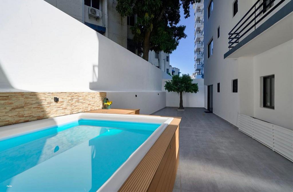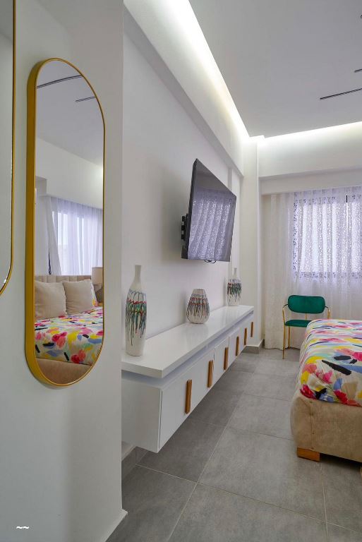 CityMax Santo Domingo Alquila Moderno apartamento en exclusiva torre en Bella Vista, próximo a la avenida 27 de febrero y Núñez de Cáceres La Torre cuenta con 2 áreas sociales, una para los propietarios y otra para los AIRBNB 2 Piscinas Infinity Area de BBQ 2 salones para eventos 2 ascensores de última generación cine Lounge TV Gimnasio Área de juegos para niños Coffe lounge & deli Laundry Lobby Características del Apartamento: 2 habitaciones 2.5 baños Sala – Comedor Cocina Habitación de servicio con su baño Área de lavado Amplia Terraza con Jacuzzi 2 parqueo paralelos CLAVE INTERNA PAA-032-05-23-3