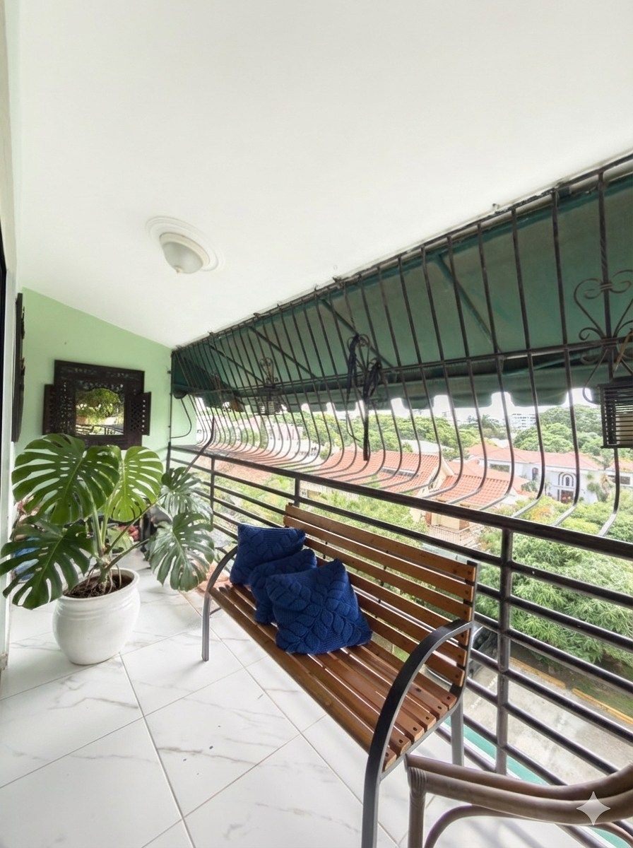 Apartamento en venta ubicado en el Sector Las Praderas, ubicado en una calle sin salida (muy tranquila) a pocos pasos del Parque de Las Praderas, en una zona residencial tranquila y bien conectada. Situado en un 4to. piso sin ascensor, ofrece vista despejada, excelente iluminación natural y óptima ventilación cruzada, lo que garantiza ambientes frescos y agradables durante todo el día. La propiedad cuenta con una sala y comedor de buen tamaño, cocina con desayunador, balcón, área de lavado y habitación de servicio. Dispone de tres (3) habitaciones, dos (2) baños, destacándose la habitación principal con walk-in closet. Incluye dos (2) parqueos y se encuentra en un residencial con portón eléctrico. Lavaplatos y 4 aires inverter incluidos en el precio de venta. Una excelente opción!