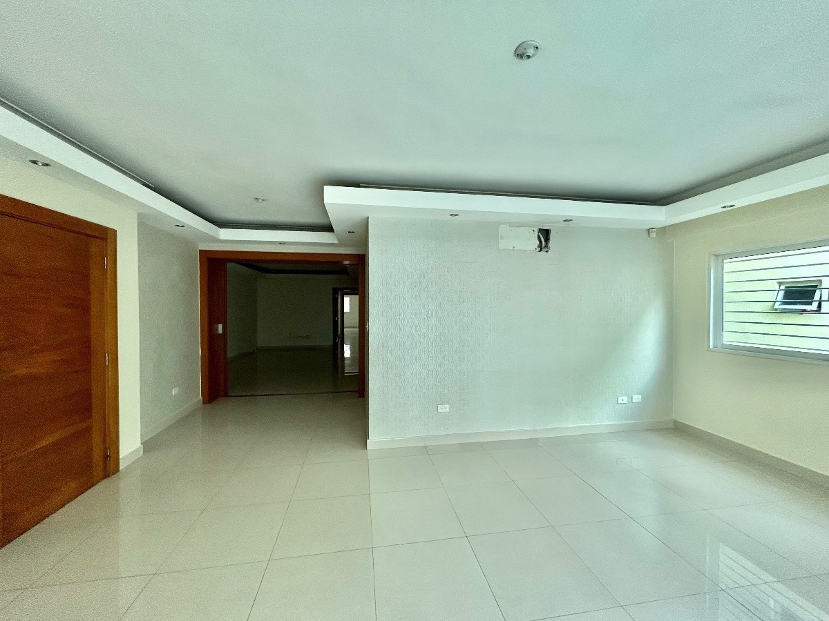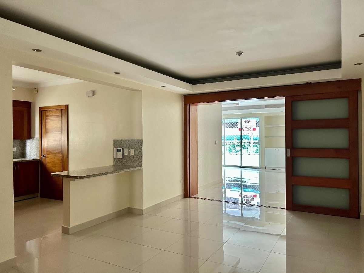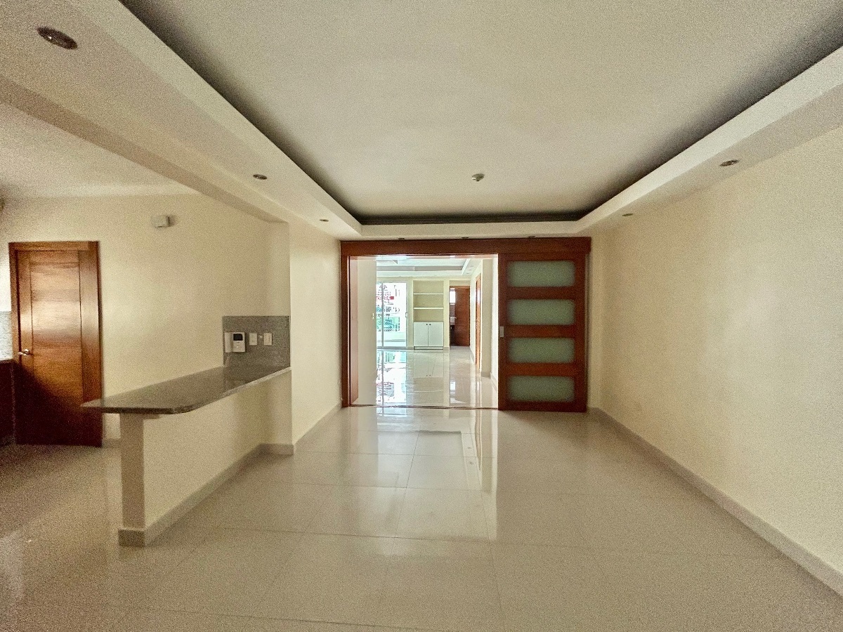 Apartamento en tercer nivel de torre en Naco. Dieciocho apartamentos en total, dos por piso. Distribución: ———————- Balcon amplio Recibidor Sala Comedor independiente Tres habitaciones con sus baños y walk-in closets con organizadores Medio baño de visitas Closet de ropa blanca Cocina con desayunador Area de lavado Cuarto de servicio con su baño Dos parqueos techados, uno en el primer nivel y otro en el sótano El edificio cuenta con lobby, gimnasio, ascensor, planta eléctrica, gas común con medidor, cámaras de seguridad, escalera de emergencia