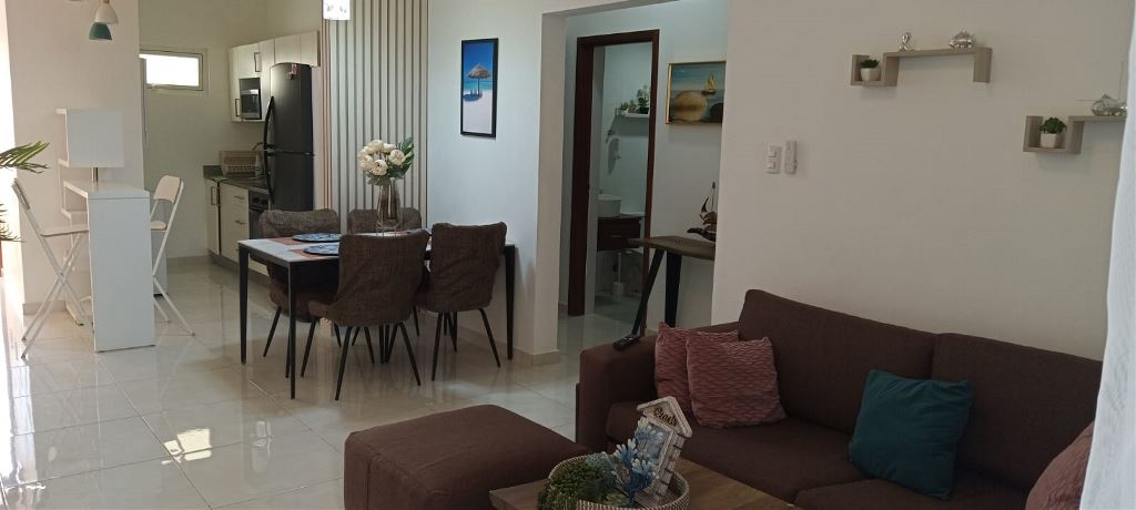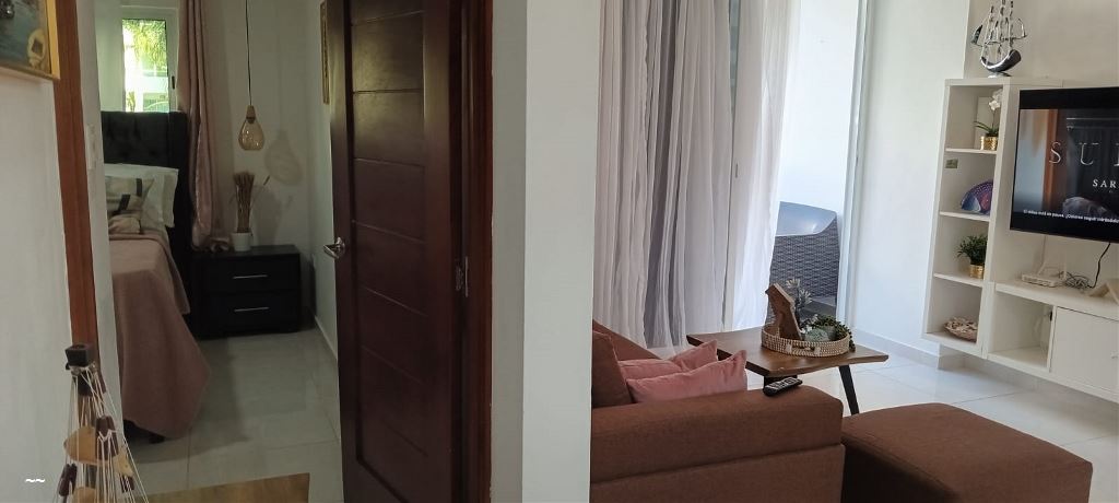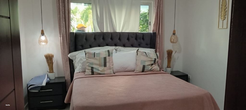 Citymax Santo Domingo alquila Apartamento Amueblado en primer nivel en Juan Dolio de 2 habitaciones, a tan solo 5 minutos de la playa y 1 minuto de escuela bilingüe. El Apartamento cuenta con: 2 habitaciones 2 baños Sala Comedor 1 parqueo Parqueo de visitas Ascensor Áreas sociales: Piscina Áreas verdes Seguridad 24 horas Cámaras de seguridad Entrada controlada Cerca de colegio bilingüe, market y farmacia. CLAVE INTERNA PAA-005-10-24