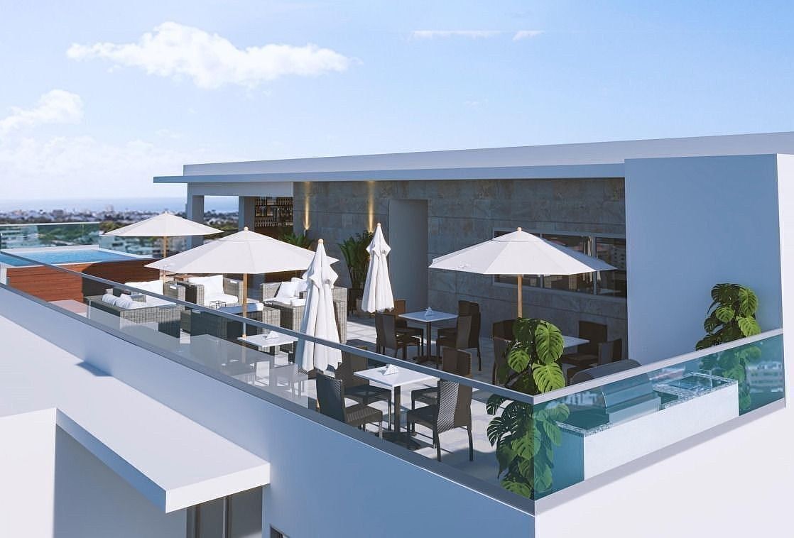** cerca del DownTown Center ** Caracteristicas apartamento: *91 M2 netos *2 habitaciones *2 baños *1 parqueo *Balcón *Sala *Comedor *Cocina Areas sociales: *Elegante lobby con fina terminación * Jacuzzi en el rooftop *Terraza destechada con BBQ *Terraza techada con bar *Gimnasio totalmente equipado *Playground interior para niños *Ambientes de jardinería Generales del edificio: -Controles de accesos y monitoreo con cámaras de vigilancia -Dos ascensores de última generación -Intercom video portero -Preinstalación de cargadores para vehículos eléctricos -Lockers y áreas para paneles solares Sistema contra incendio -Doble sistema de bombeo de agua -Pozo tubular -Planta eléctrica full -Gas común PARQUEOS ADICIONALES y LOCKERS EN VENTA