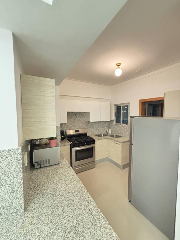 Venta de Apartamento en Renacimiento Descubre nuestro moderno y ventilado apartamento ubicado en Renacimiento, con terraza y Balcón para quienes buscan comodidad, buena ubicación y un residencial de pocas familias. Características: 177 metros totales, 121.45 de apartamento, más 31.50 de terraza y 22.42 de parqueos 2do Nivel con Terraza privada 2 habitaciones con excelente iluminación y baños privados Closet y Walking closet en habitación principal (master) ½ baño de visita. Amplia Terraza con techada con palillera Sala, comedor y cocina Habitación de servicio Ascensor Planta full Seguridad 24 horas Amplio lobby de acceso Gimnasio totalmente equipado 2 parqueos independientes y techados Cuarto de servicio con su Baño área de lavado Nuestro apto. está listo para mudarse ya que además de su excelente estado en el que se encuentra, también le incluye: Shutter electrónicos en todas las ventanas y puertas corredizas, incluyendo la que dan a la terraza Posee maderas preciosas todas en excelentes condiciones y cerradura inteligente digital Algunas paredes revestidas con empapelados modernos y colores neutros Los aires acondicionados en todas las áreas Areas Sociales y facilidades para uso común: Ascensor Gimnasio Baños Terraza Destechada Salón de eventos con Kitchenet Lobby Climatizado Planta Full Gas Común Pozo Cámaras de vigilancia Cuarto de Conserjería El RENACIMIENTO, Cuenta, además, con plazas, Colegios, e instalaciones para el pleno desarrollo de la vida diaria. Tales como: Supermercados (Jumbo, Nacional, Bravo, Sirena Market) Colegio Bilingües New Horizons Colegio Loyola Colegio Dominicano De la Salle Colegios los Pepitos Vive con la tranquilidad, privacidad y el confort que mereces. Contáctanos hoy y agenda tu visita