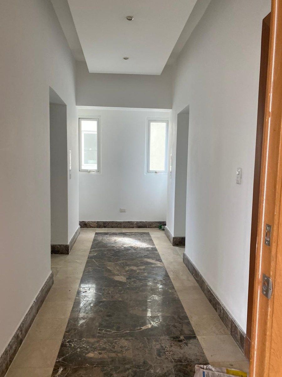 272.91 metros cuadrados; nivel 10, vista despejada. Consta de: ? Lobby privado en el apartamento. ? Sala. ? Comedor. ? Balcón. ? Cocina con tope en granito y desayunador. ? Área de lavado. ? Hab. de servicio con baño. ? Locker. Torre cuenta con: ? Jacuzzi. ? Gimnasio. ? Terraza. ? Lobby común climatizado. ? Área de niños, ? Salón de billar. ? Baño de visitas. ? Family room. ? 3 parqueos asignados y techados en hormigón pulido y para gomas. ? 3 Habitaciones con walking closet. Detalles ? Pisos: Mármol. ? Pisos Exteriores: Mármol. ? Techo: Hormigón armado y sheetrock. ? Gabinetes: MDF de piso y pared. ? Tope de cocina y desayunador: Granito. ? Huellas y contrahuellas escalera: Mármol. ? Puertas Principales: Madera preciosa. ? Puertas Interiores y closets: Madera preciosa. ? Puerta a balcón: Corredizas de aluminio y cristal. ? Ventanas: Corredizas en vidrio y aluminio. ? Revestimientos: Cerámicas con listelos. ? Baños: tipo cabina con mamparas en cristal y lavamanos empotrados en mueble de madera preciosa. Precio: US$ 500,000.00 Mant/ mes: RD$25,000 ----------------------------------------
