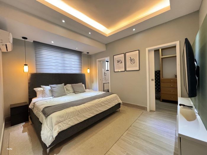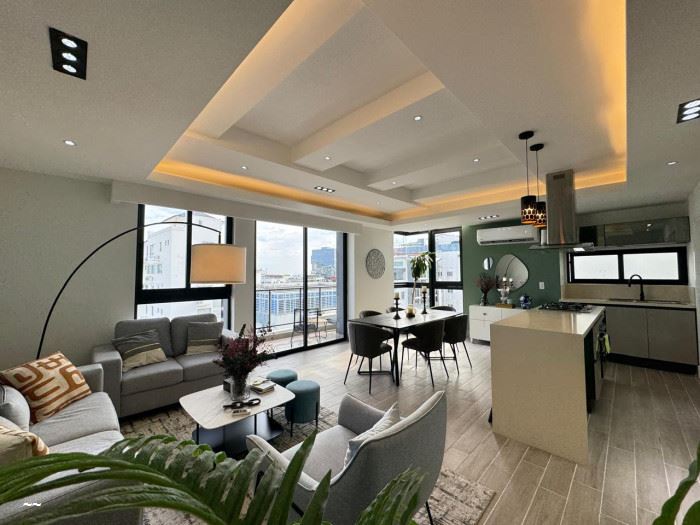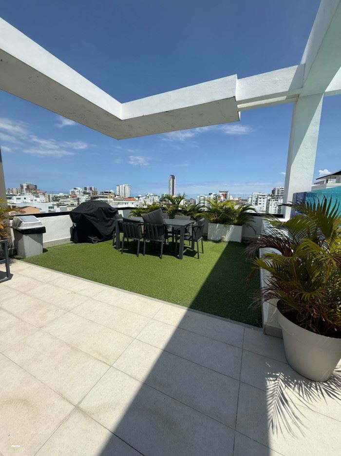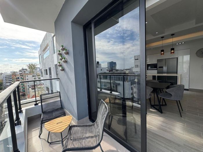 Apartamento de 2 habitaciones en alquiler amueblado en Bella vista próximo a la Romulo Betancourt 2 Amplias habitaciones con su baño (Principal con Walking closet) 2.5 baños Estudio Sala comedor Cocina concepto abierto con desayunador Ventanal de piso a techo Área de lavado Habitación de servicio 2 parqueo techado La torre cuenta con: Lobby tipo hotel climatizado Recibidor BBQ Terraza destechada Salón para eventos Piscina Gimnasio CLAVE INTERNA PMA-007-06-25
