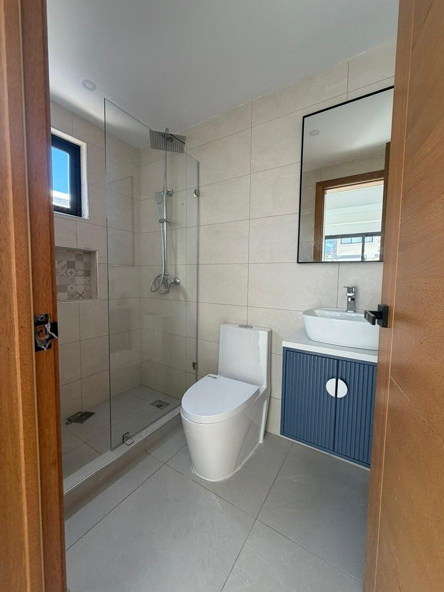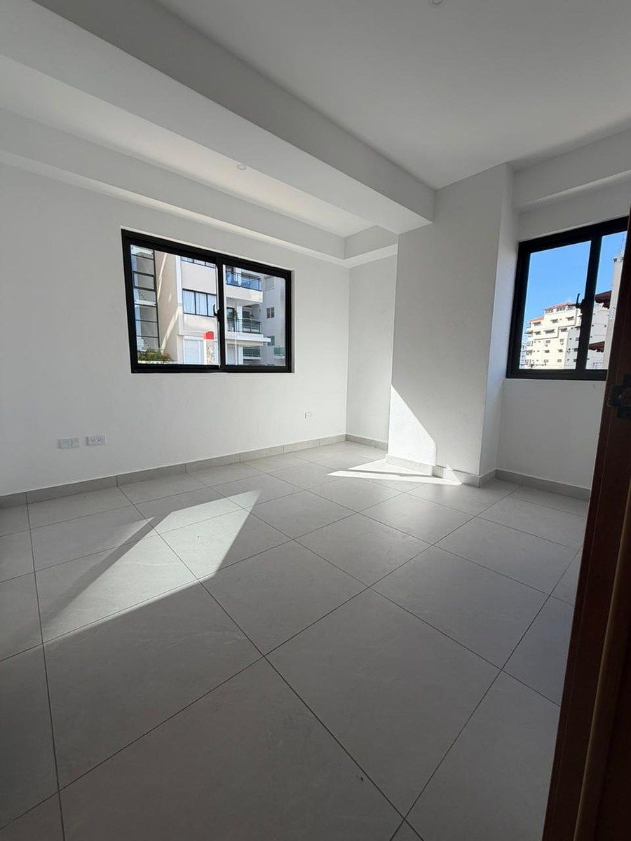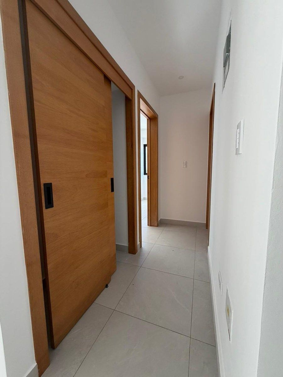Apartamento a estrenar en venta, en torre familiar ubicada en Urbanización Real, zona que brinda tranquilidad para el buen vivir. Torre es 100% familiar, apartamentos son todos de 2 habitaciones. Lobby climatizado, con seguridad 24/7 Escaleras de emergencia Planta Full Gas común Apartamento de 2 habitaciones cada una con su baño y w/c Balcón con vista despejada Closet de ropa blanca Sala Comedor y cocina abierta Area de lavado Habitación de servicio 1 Parqueo Area social, terraza techada amueblada, area destachada amueblada, BBQ Contáctame para coordinar una visita.