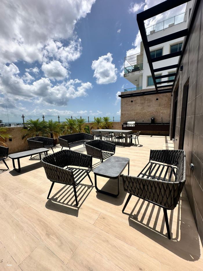 Citymax Santo Domingo alquila apartamento de una habitación, nuevo a estrenar en zona exclusiva de Renacimiento cerca de Los Cacicazgos y a pocos pasos del Mirador Sur. Distribucion del Apartamento: Sala Cocina Comedor 1 Parqueo Área de lavado 1/2 Baño para visitas 1 Habitación con su baño Balcón integrado con vista despejada Amenidades de la Torre: Lobby Ascensor Jacuzzi Gimnasio Salón de TV Salón de Reunión Control de acceso Seguridad 24 horas Cámara de seguridad Sistema contra incendio Terraza destechada con BBQ CLAVE INTERNA PAA-014-01-26