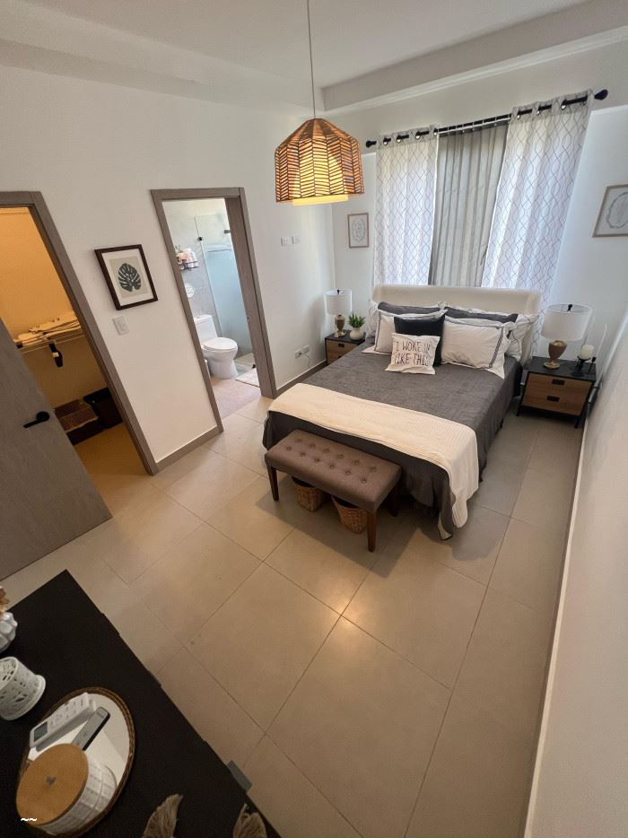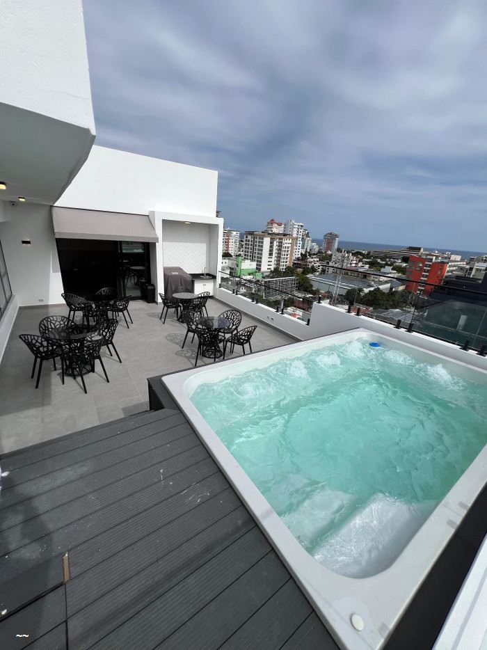 Citymax Santo Domingo vende Hermoso apartamento amueblado nuevo a estrenar en Bella Vista Distribución del apartamento: 1 habitaciones con baño y closet Sala Comedor Cocina Baño de visita Un parqueo techado La Torre cuenta con: Un ascensor Planta full Gas común Gimnasio area de niños Jacuzzi vista al mar Salón de eventos con aire acondicionado Lobby climatizado con servicio al cliente CLAVE INTERNA PMA-001-03-25-1
