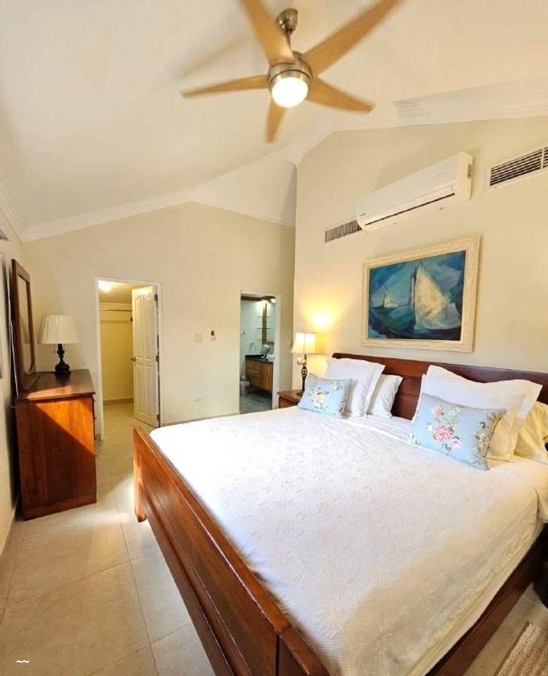 Metro Golf & Country Club -Villas Paradise- Villa de dos niveles: Segundo nivel: 3 habs. cada uno con sus baños y aires acondicionado. Pasillos y Closet de Ropa Blanca. Primer nivel: -Tres parqueos dos techados y todos justo al frente de la villa. -Balcón a la entrada. -Cocina. -Area de lavado -Habitación de servicio con su baño. -Sala / Comedor con aire central. -1 baño adicional completo. -Terraza amplia techada. -BBQ de gas en la terraza. -Terraza Amueblada y equipada completa. -Paneles solares e inversor. -Estufa, nevera y electrodomésticos. -Lavadora y secadora. -Abanicos de techo. Amenidades de Metro Country Club: Espectacular campo de golf Los Marlins, cuentan con las canchas iluminadas de tenis, piscinas, bar y restaurante Juan Marichal Hoyo 19 de la casa. * Seguridad 24/7 * Farmacia Carol * Restaurante * Piscina pública * Campo de Golf * Hotel Hodelpa * Playa a 5 minutos en vehículo Precio: US$290,000