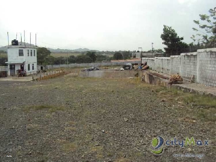 CityMax Santo Domingo Vende Excelente Terreno Comercial, ubicado en Pedro Brand (Autopista Duarte). Este Terreno tiene una nave industrial construida de acero y techo de aluzinc, edificio de concreto con balanza para 120,000 libras, rodeado por 2 avenidas y 2 calles, verjas de 10 lineas de block y viga de amarre con columna cada 10 metros. Comentarios: Terreno con nave industrial construida de acero y techo de aluzinc, edificio de concreto con balanza para 120,000lbs. Posee 2 titulos (11,000 mts y 5,030 mts) excelente para poner una naviera, ferreteros, almacen de hierro, balanza para camiones. CLAVE INTERNA PVT-011-01-14