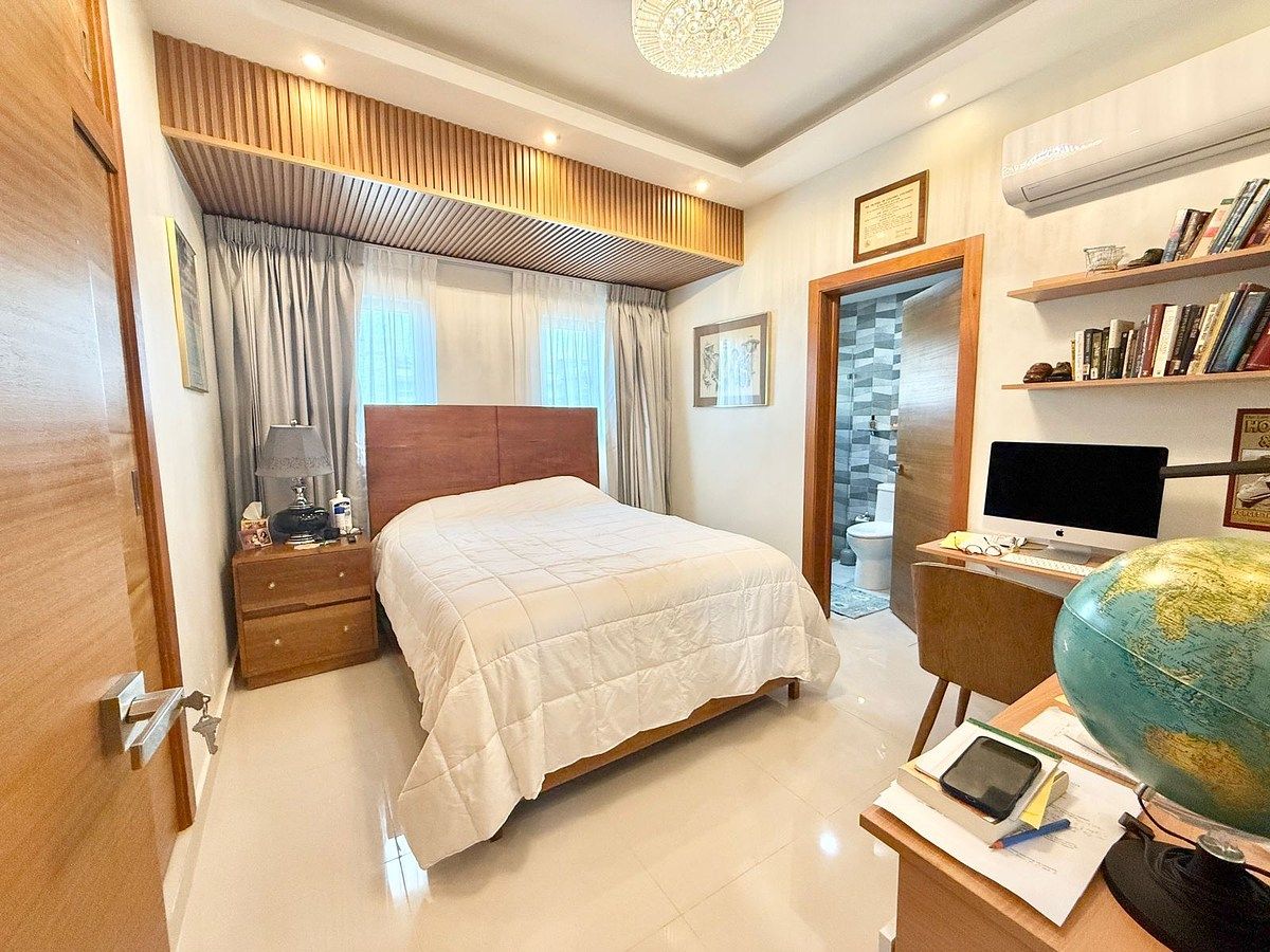 ?????????????? ?????? Vendo apartamento como nuevo, en residencial familiar,No barrios, No airbnb __________________________ - 144 metros netos (172 en total) - 3 Habs. (Principal con w/c) - 3.5 Ban~os - 2 Parqueos techados individuales - Balcón frontal al sur - Cuarto de servicio - A´rea de lavado - Techos en Sheetrock __________________________ ?????????????????????? ?? ????????????????????: - - Lobby, Ascensor, Planta full - Gas comu´n con medidores - Gimnasio equipado - Salón multiuso - Terraza con jacuzzi (vista al mar) - Sistema contra incendio - Cisterna y Pozo de agua - Mant. Rd$ 11,500 - Const. Año 2025 ___________________________ Inversión USD 385,000 __________________________ Con Dios todo es posible!!