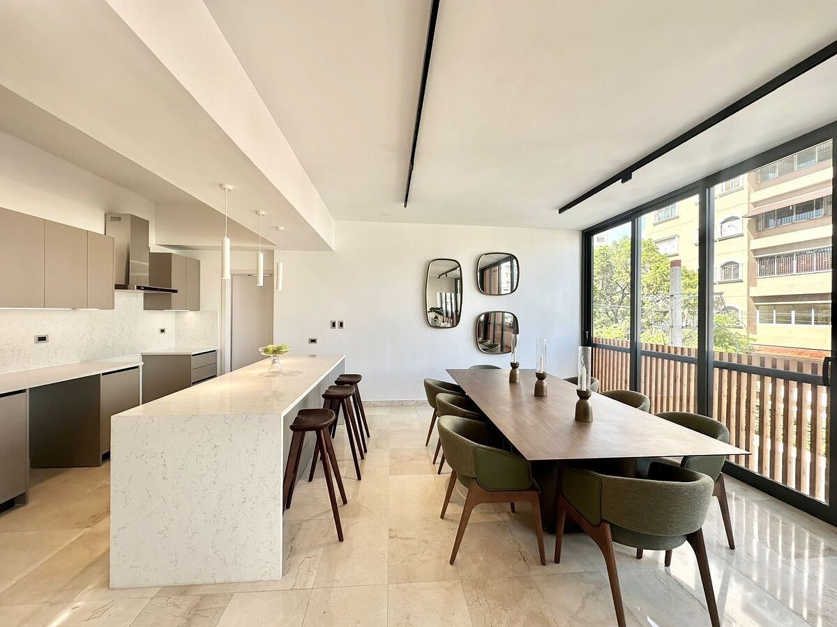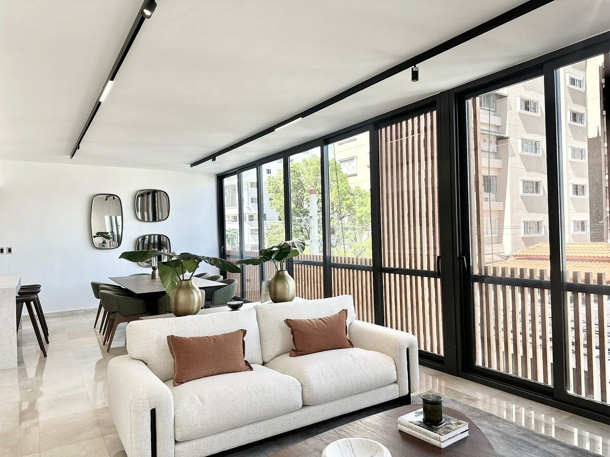 192 mts neto. 217 mts total. • Tres (3) Habitaciones • 3.5 Baños • Piso de mármol • Planta eléctrica • Cocina modular fría y comida caliente • Puertas modulares en madera importada • Pre- Instalación de AC • Gas común con medidores por apartamento • Cámaras de seguridad y verja electrificada • Dos (2) ascensores de última tecnología con control de acceso. Área común; • Gimnasio • Área de niños • Salón de eventos • Lobby completamente amueblado