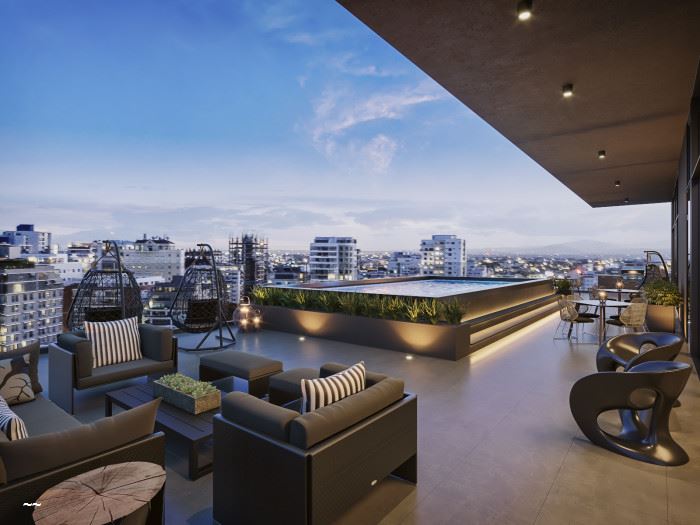 Citymax Santo Domingo Vende Apartamentos en Impresionante Torre, estilo Condo Hotel de 19 niveles en moderno proyecto ubicado en el corazón del Ensanche Ozama, próximo a la Avenida Venezuela. Las amenidades de la Torre estarán en el piso 19 con una impresionante vista 360 que contara con: Terraza en Vista Sur: Piscina y área de Lounge Terraza en Vista Norte: Jacuzzi, área de Lounge, Gimnasio, Business Center La Torre contara con servicio Hotelero y de Valet-Parking Descripción del Apartamento: 1 Habitación Sala – comedor Cocina 1 parqueo CLAVE INTERNA PVA-019-03-26-1
