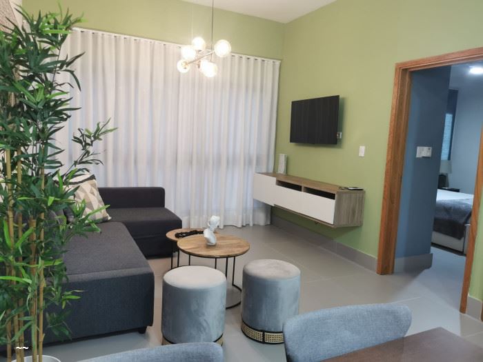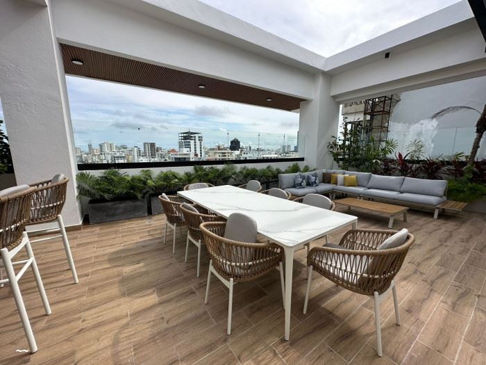 Citymax Santo Domingo Alquila Moderno Apartamento amueblado de 1 de habitación en el Naco 1 Amplia habitación con su closet 2 baños Sala - comedor Moderna Cocina abierta Área de lavado 1 parqueo Amenidades de la Torre Lobby Climatizado Terraza destechada Picuzzi con vista a la ciudad Gimnasio full equipado Planta full Seguridad 24 horas CLAVE INTERNA PAA-030-07-23